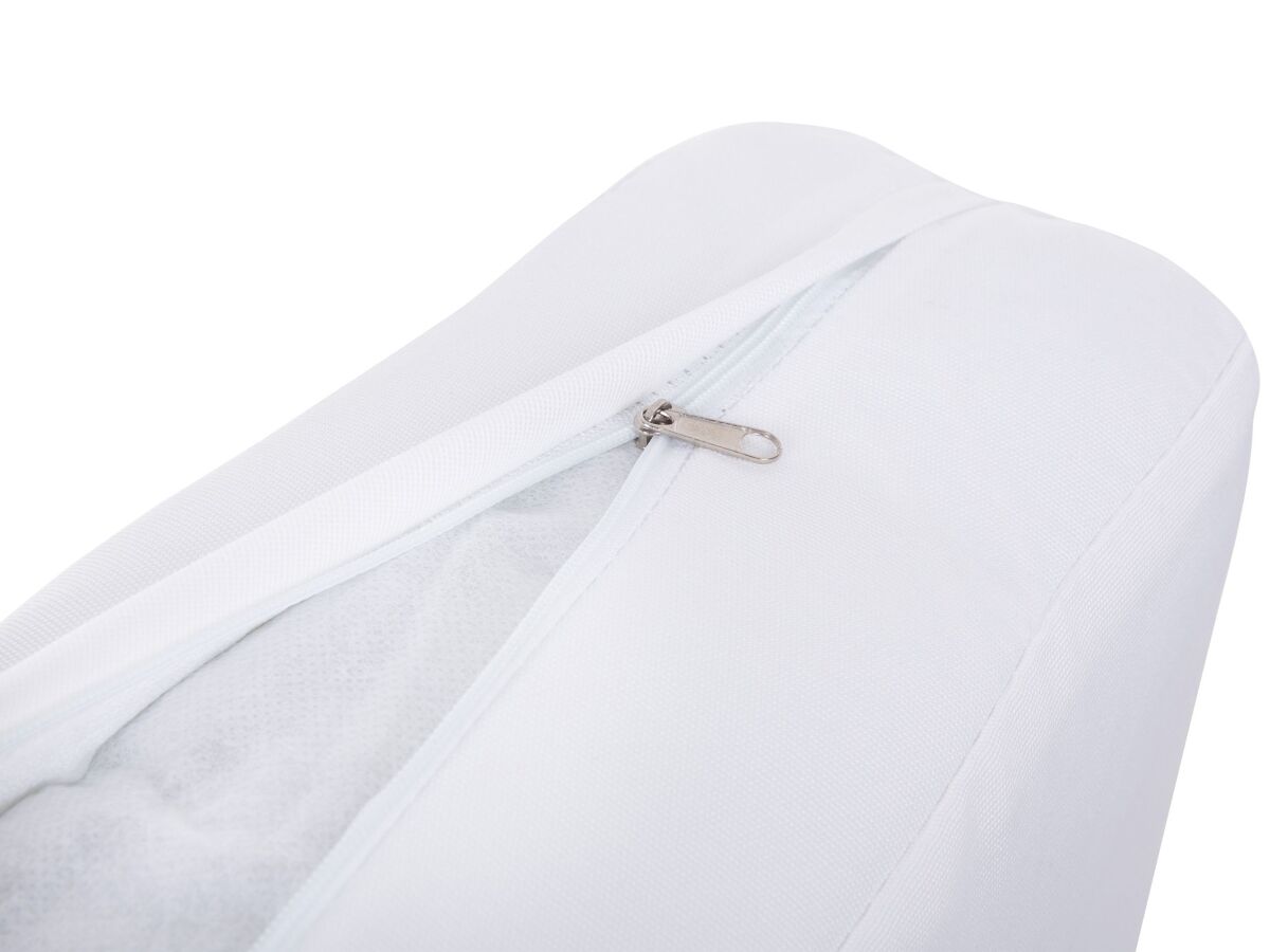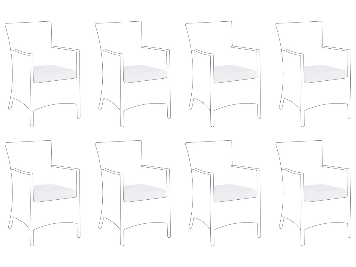 Conjunto de fundas para sillas ITALY en color blanco apagado. Gracias a este conjunto de fundas adicionales para cojines podrás darle un carácter completamente nuevo a tu mobiliario de jardín. Este juego incluye ocho fundas de cojín de color blanco crema fabricadas en poliéster de alta calidad. Son resistentes a los rayos UV, la suciedad y la humedad; perfectas para los veranos al aire libre. Su cremallera permite quitarlas y lavarlas fácilmente.