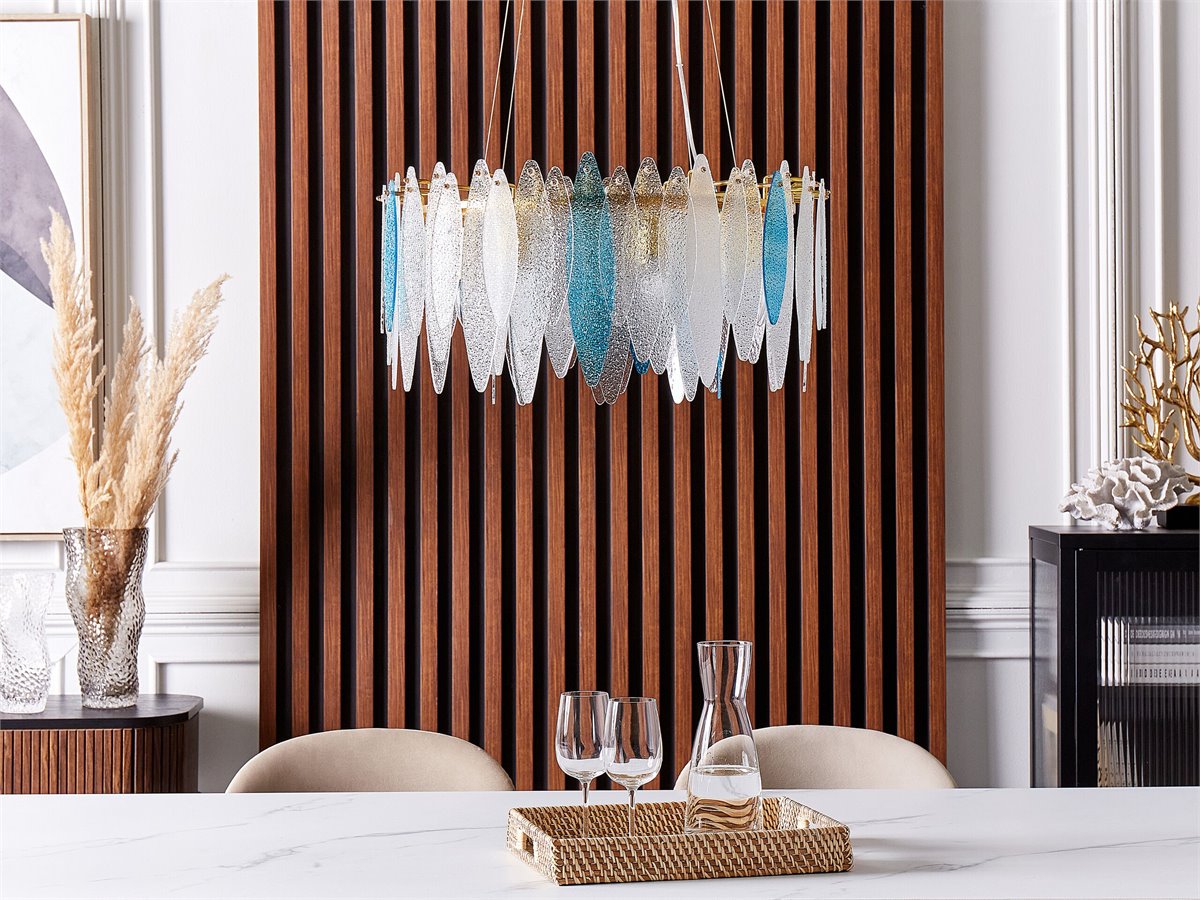 Lámpara de suspensión de cristal. Ilumina tu interior con esta impresionante lámpara de araña, un verdadero símbolo de opulencia. Fabricada en hierro resistente y adornada con exquisitas pantallas de cristal, desprende una calidez cautivadora que complementa a la perfección los interiores más glamurosos. Su instalación rápida y sencilla garantiza una experiencia sin complicaciones. Disfruta de la belleza atemporal de esta lámpara de araña, ya que proyecta un ambiente cálido y acogedor en tu espacio.