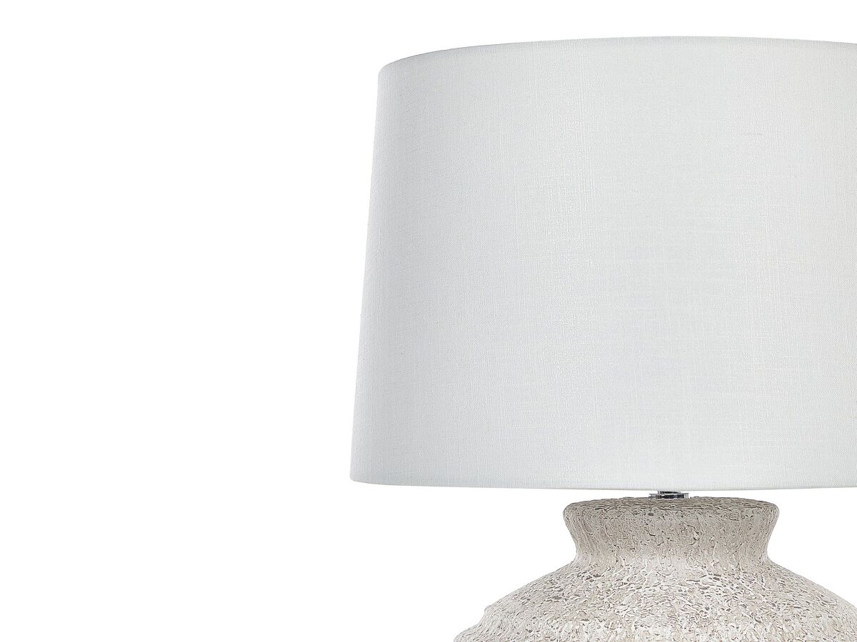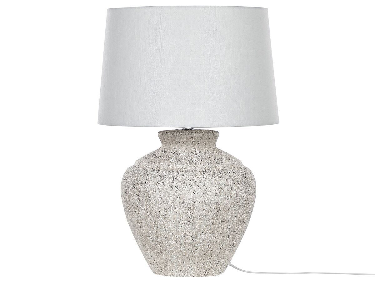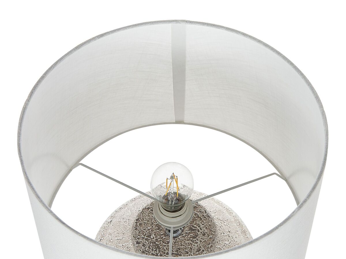 Lámpara de sobremesa con base efecto piedra. Ilumina tu interior con esta lámpara de mesa de diseño tradicional. Está fabricada a partir de cerámica duradera y de alta calidad. La base similar a una piedra aporta una cierta singularidad. La pantalla de tela está elaborada a mano. Combina bien con cualquier estilo de interior.