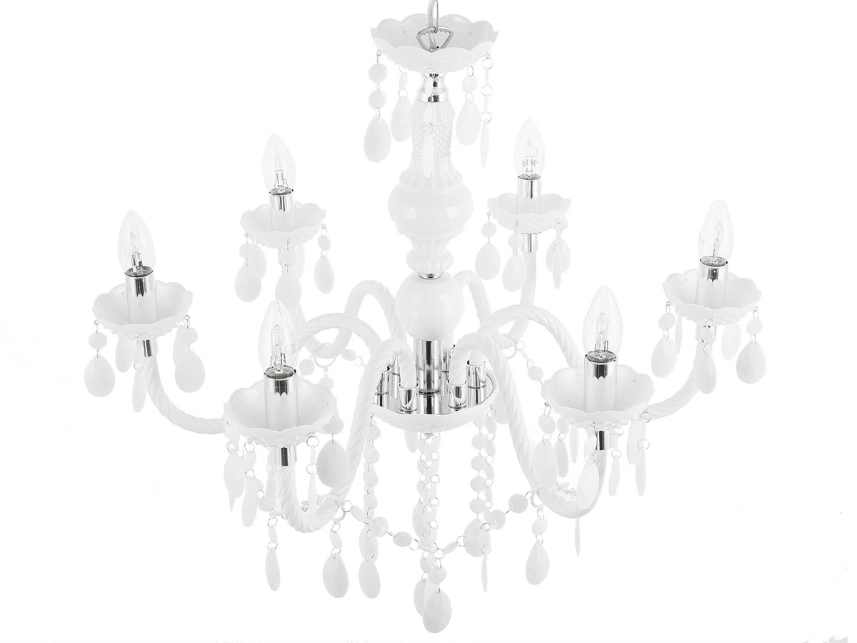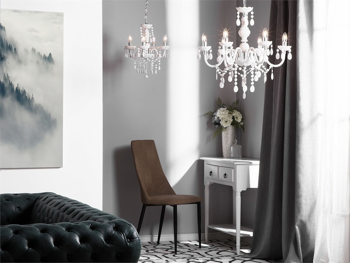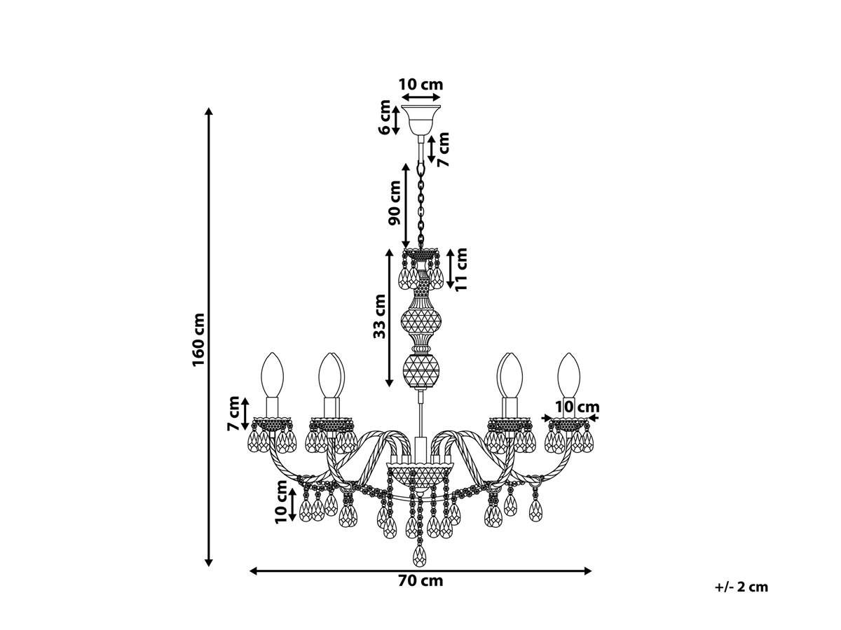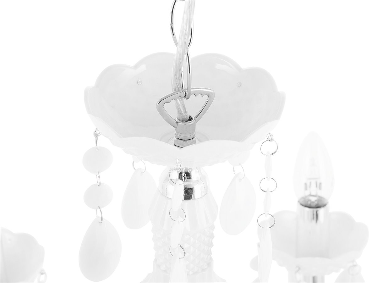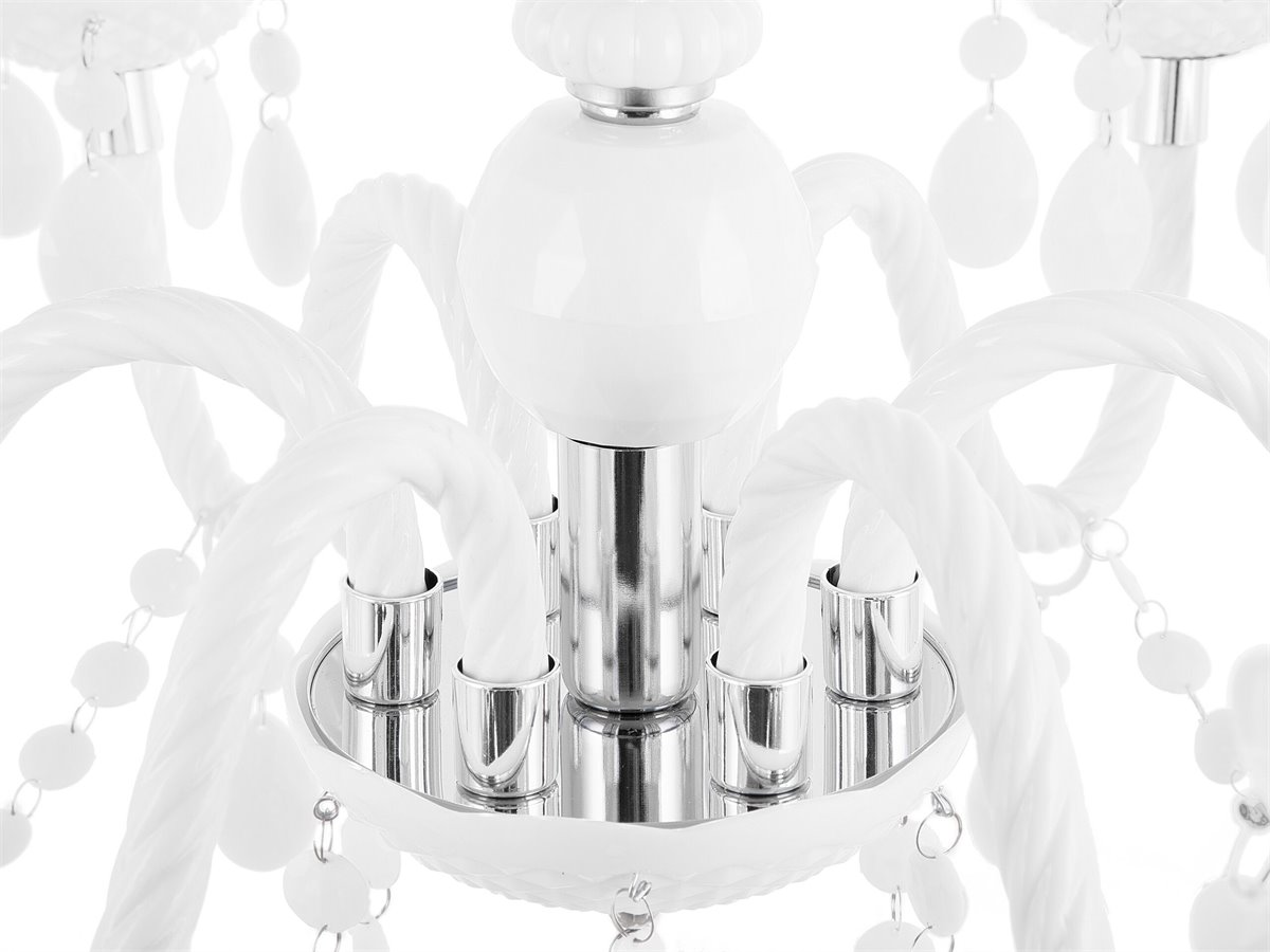 Lámpara de araña. Esta lámpara de araña decorará con lujo el salón o el comedor con sus elegantes lágrimas. Fabricada en material sintético de alta calidad, consta de 6 bombillas de vela que, junto con los brillantes cristales acrílicos colgantes, proporcionan un maravilloso efecto de luz. Quedará perfecta en interiores de estilo moderno, tradicional o glamuroso.