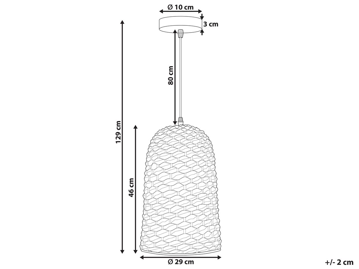Información adicional: Apta para bombillas desde clase energética A hasta G (en orden decreciente de eficiencia). Pueden utilizarse bombillas LED, halógenas y de bajo consumo, Cualquier ajuste en la longitud del cable ha de ser realizado por un electricista, Abre el embalaje con cuidado, especialmente cuando utilizas herramientas afiladas o puntiagudas, ya que pueden dañar el producto, Cada producto está hecho a mano, por lo que pueden existir diferencias en la textura o el color. Estas son las características del material y no se consideran un defecto