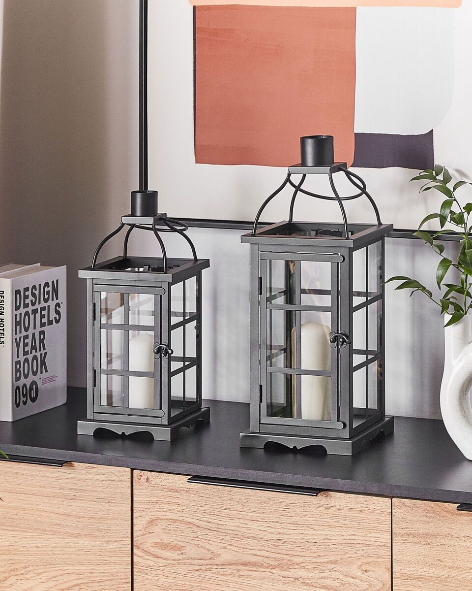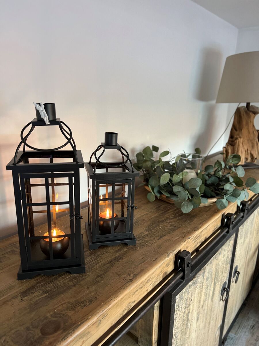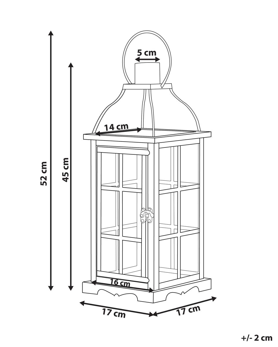 Farol de velas para interior y exterior. Añade a la decoración de tu sala de estar este farolillo decorativo. Está fabricado a partir de metal duradero, ligero y de alta calidad. Viene con un asa que facilita el movimiento de una habitación a otra. Gracias a su parte de vidrio, se puede colocar una vela grande en su interior.