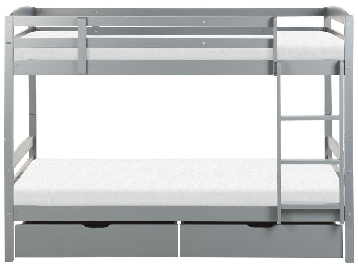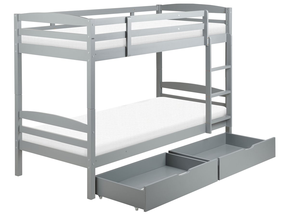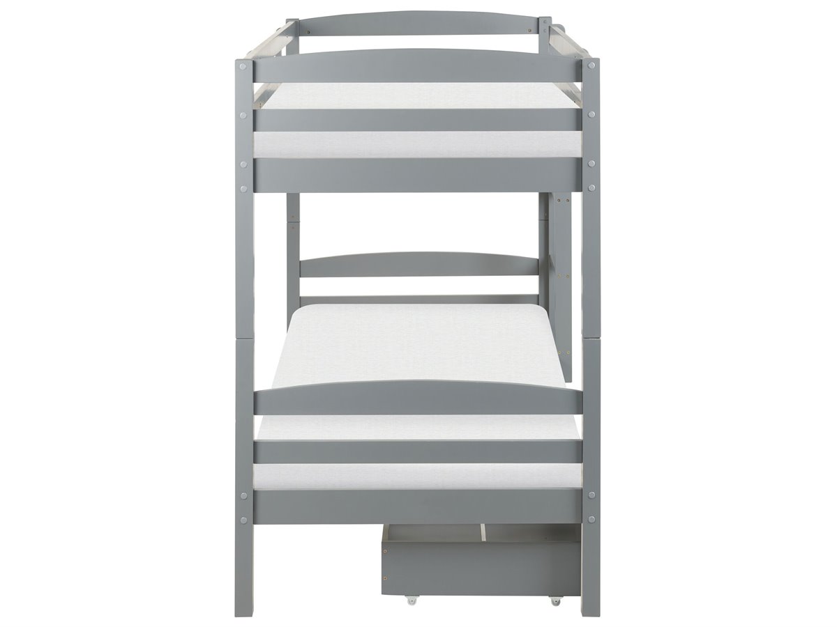 Cama para habitación infantil. Esta litera funcional es ideal para cualquier habitación infantil. Está fabricada a partir de madera de pino de alta calidad. El somier de listones garantiza un sueño saludable. Incluye una escalera que facilita el acceso a la cama superior. Viene con 2 cajones para guardar rmantas, almohadas o cojines. Combina bien con cualquier interior moderno, minimalista o costero.