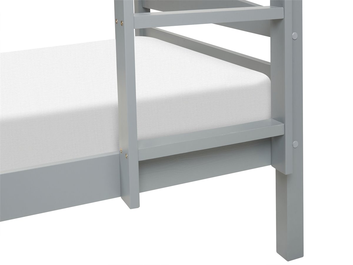 Información adicional: No permitir que los niños menores de 6 años utilicen la litera superior. Utilizar siempre la escalera para entrar y salir de la litera superior. El colchón superior no debe sobrepasar la línea marcada en el extremo del armazón. Debido al diseño de la litera, la litera superior requiere un colchón de perfil bajo (máximo 10 cm) para mayor seguridad y comodidad. Para la litera inferior, se recomienda una altura de colchón de aproximadamente 16 cm. Este producto ha sido diseñado y probado para cumplir los estrictos requisitos de seguridad establecidos en el certificado EN 747-1, lo que garantiza su estabilidad, durabilidad y seguridad general durante el uso. Por razones de seguridad, el producto debe montarse en la pared. Por favor, ten en cuenta que la madera es un producto natural, y cada pieza puede presentar ligeras variaciones. Las diferencias en el color o la textura, como las arrugas u otras características naturales, no se consideran un defecto ni tampoco una base de reclamación
