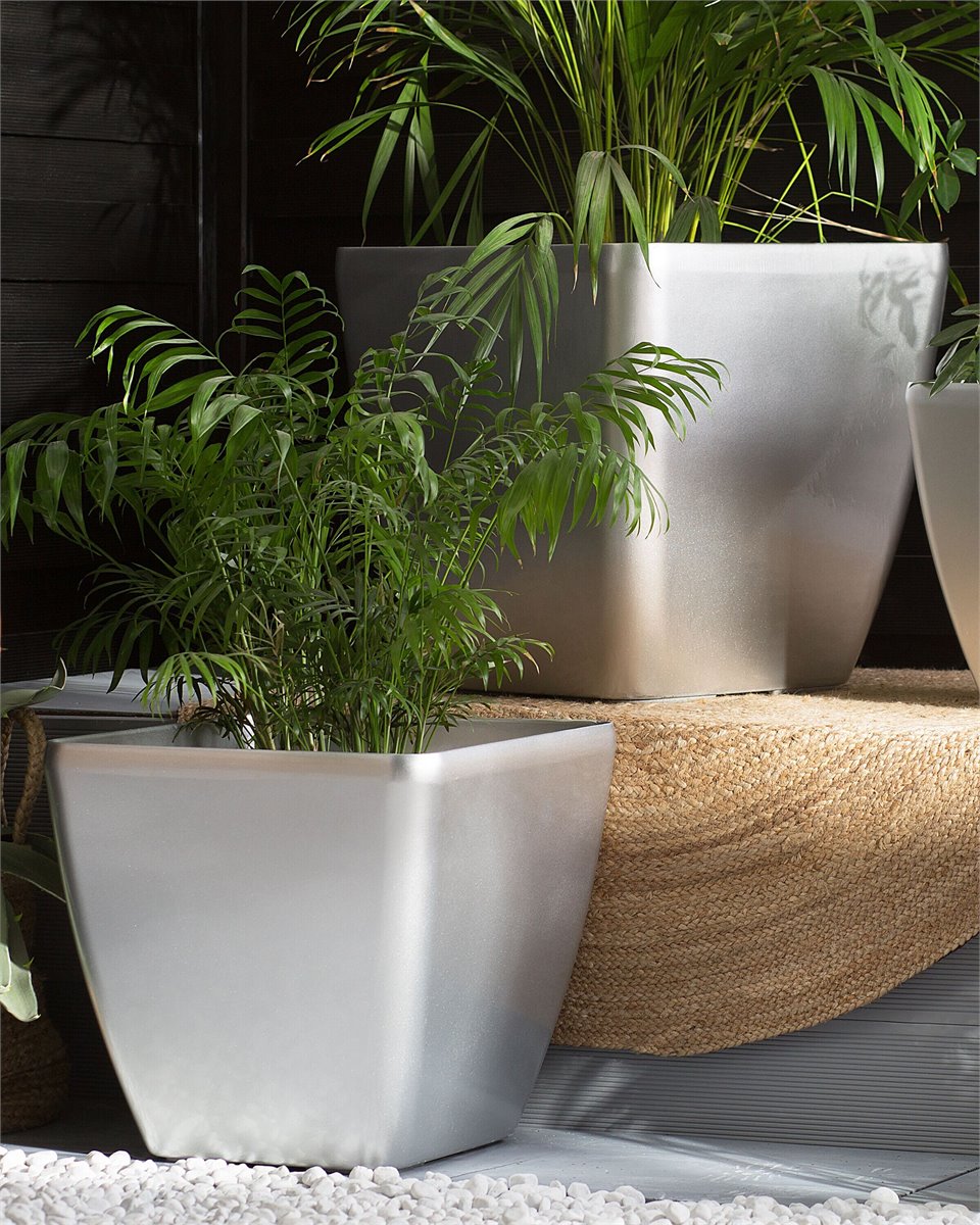 Ventajas: Con orificios de drenaje opcionales (tapón incluido), Diseño moderno, Materiales de la más alta calidad, Resistente a las bajas y altas temperaturas, Ideal para uso en interiores y exteriores, Resistencia UV