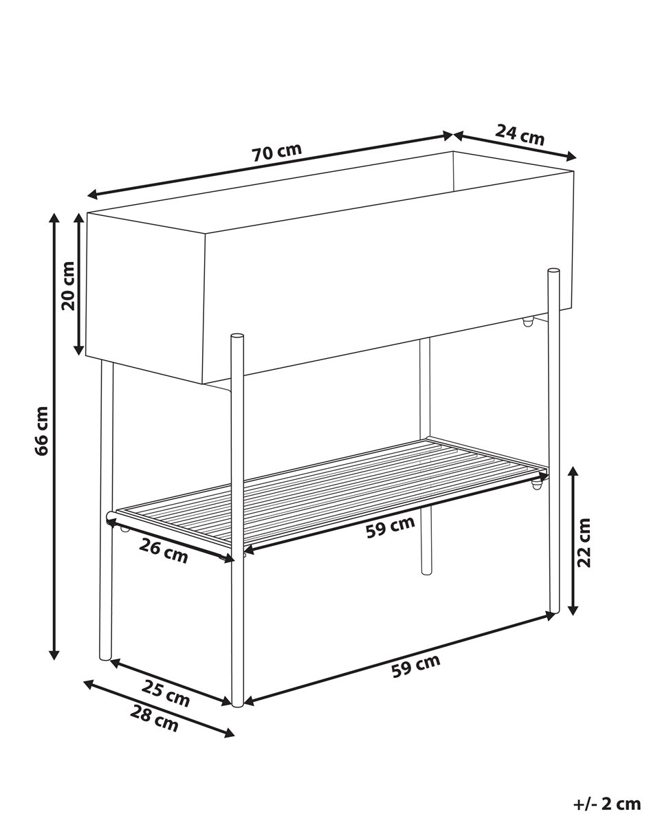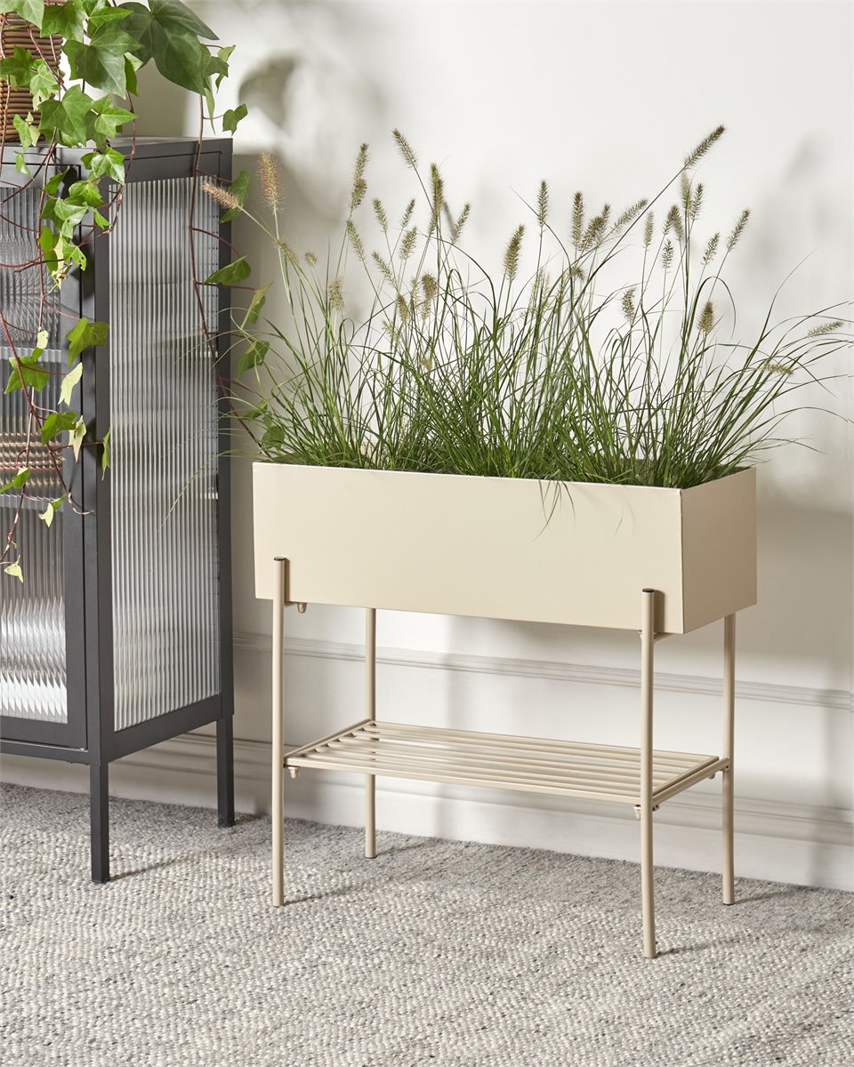 Macetero decorativo elevado. Eleva tu vegetación con este elegante soporte para plantas. Fabricado en metal duradero, su superficie es resistente al óxido, por lo que esta pieza es un complemento perfecto para tus zonas interiores o exteriores. Con un práctico estante incorporado, hay espacio extra para almacenar más plantas o decoración y su color clásico y forma rectangular están diseñados para complementar todos los estilos.