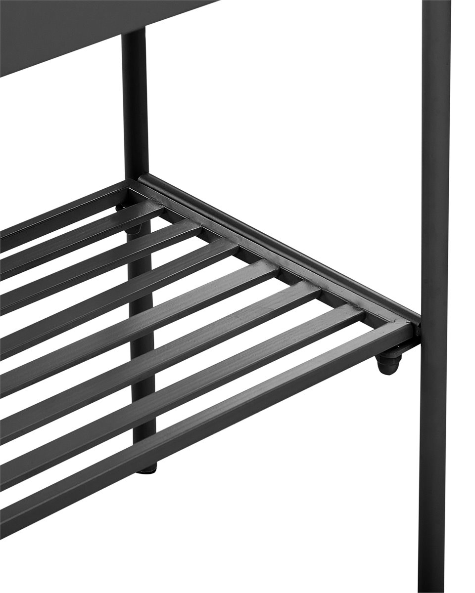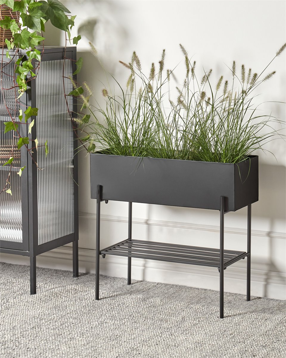 Macetero decorativo elevado. Eleva tu vegetación con este elegante soporte para plantas. Fabricado en metal duradero, su superficie es resistente al óxido, por lo que esta pieza es un complemento perfecto para tus zonas interiores o exteriores. Con un práctico estante incorporado, hay espacio extra para almacenar más plantas o decoración y su color clásico y forma rectangular están diseñados para complementar todos los estilos.