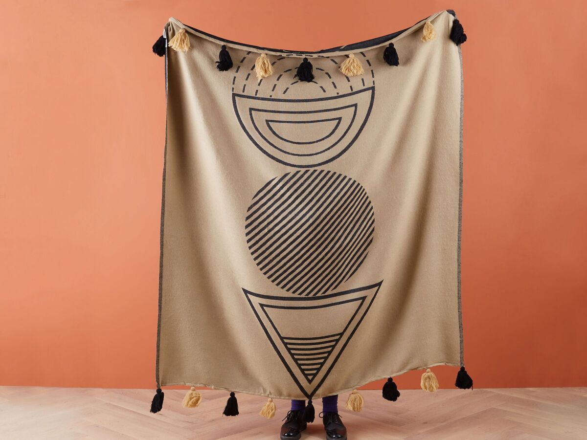 Manta decorativa. Añade un toque boho a tu sala de estar o dormitorio con esta manta decorativa. Está fabricada a partir de acrílico de alta calidad y suave al tacto. El patrón visible a ambos lados y las borlas decorativas en los extremos llaman poderosamente la atención.