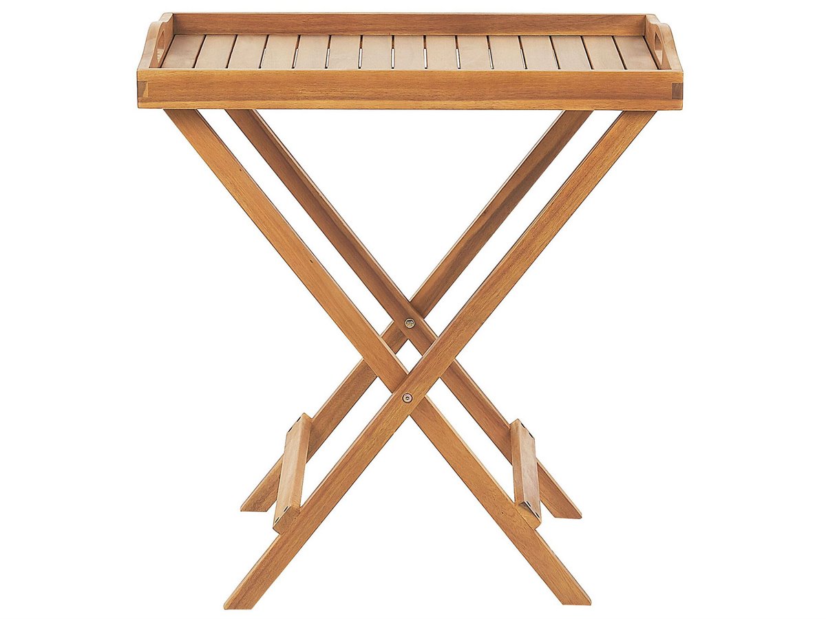 Mesa de centro. Añade un toque tradicional a tu zona exterior con esta mesa auxiliar. Está fabricada a partir de madera de acacia de alta calidad y de acabado natural. Es plegable, lo que facilita el almacenaje.