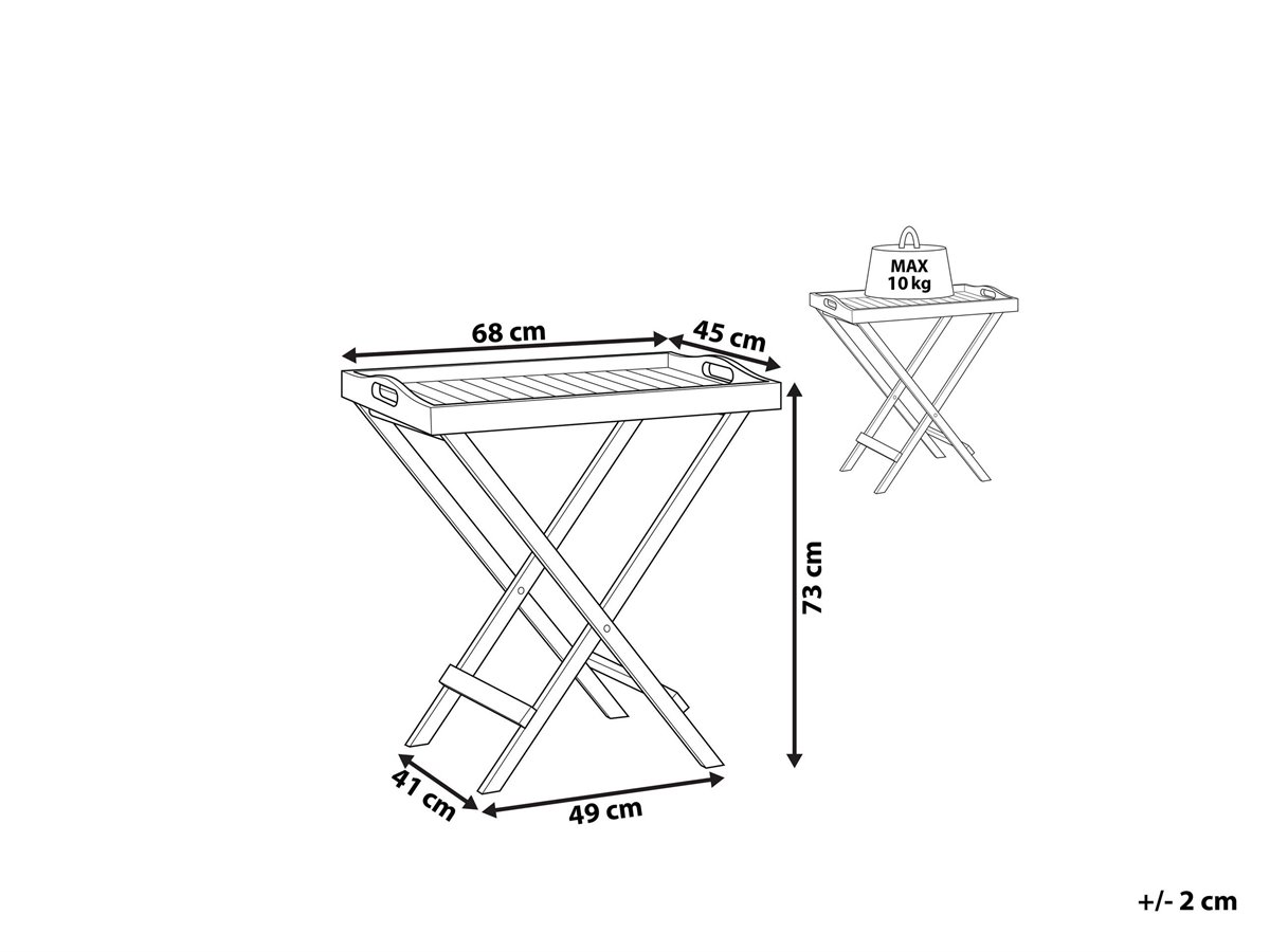 Ventajas: La parte superior desmontable se puede utilizar como tabla para servir, Materiales de calidad, Ideal para uso en interiores y exteriores, Fabricación sólida y precisa, Para mantener su calidad, debe protegerse del agua y la lluvia, Plegable para un fácil almacenamiento