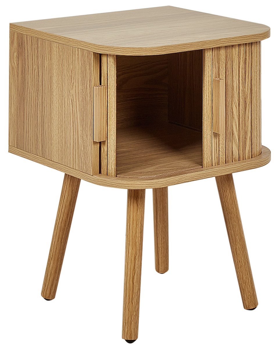 Mesilla de noche con puertas correderas. Completa tu dormitorio con esta elegante mesilla de noche que combina un diseño tradicional con un toque moderno. Fabricada en MDF resistente, cuenta con dos puertas correderas lisas que revelan almacenamiento oculto, perfecto para mantener organizados los objetos esenciales. Apoyada en robustas patas de madera de pino, este mueble añade un encanto atemporal a interiores de varios estilos. Su tablero fácil de limpiar garantiza un mantenimiento diario sencillo, lo que la convierte en una adición práctica y atractiva a tu espacio.