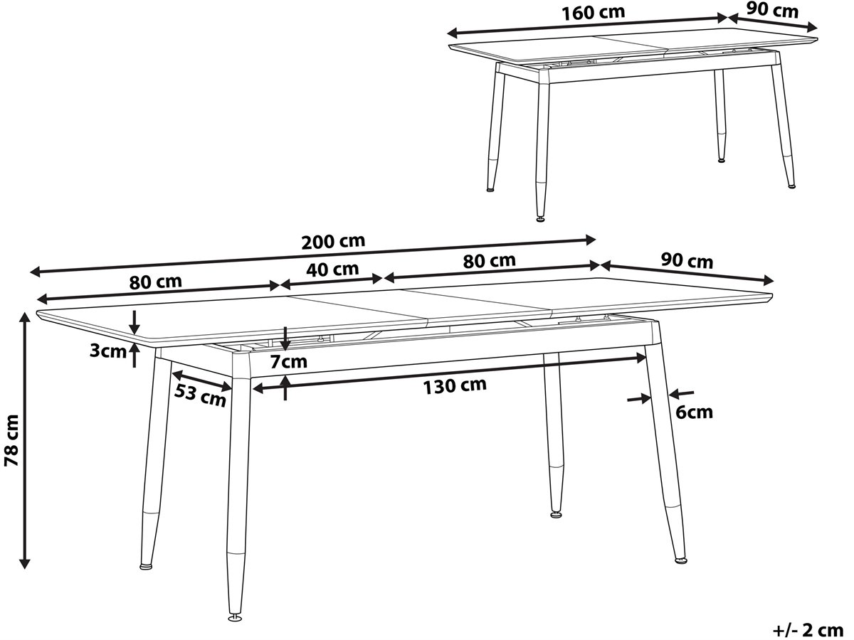 Mesa con extensión. Añade funcionalidad a tu interior con esta mesa de comedor. Está fabricada a partir de MDF resistente y duradero. El patrón de vetas y nudos del tablero de madera aporta un cierto encanto rústico al diseño. Gracias al mecanismo oculto, puede extenderse fácilmente cuando se necesite más espacio. Las patas de metal proporcionan la máxima estabilidad.