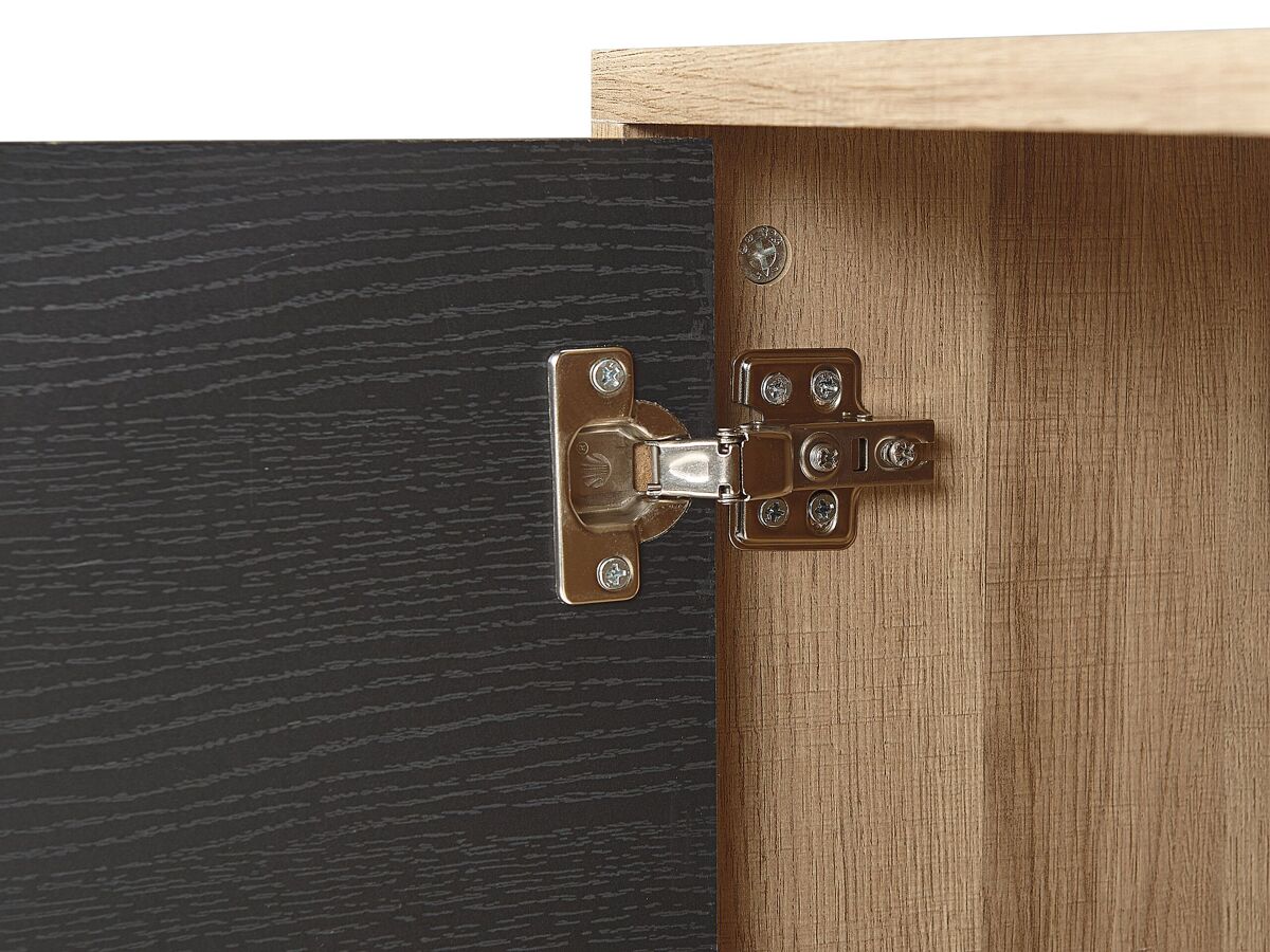 Ventajas: Con espacio para pasar los cables, Sistema push-to-open, Diseño moderno, Acabado similar a la madera para un aspecto natural, Espacio de almacenamiento funcional, Patas con tapas antideslizantes de seguridad