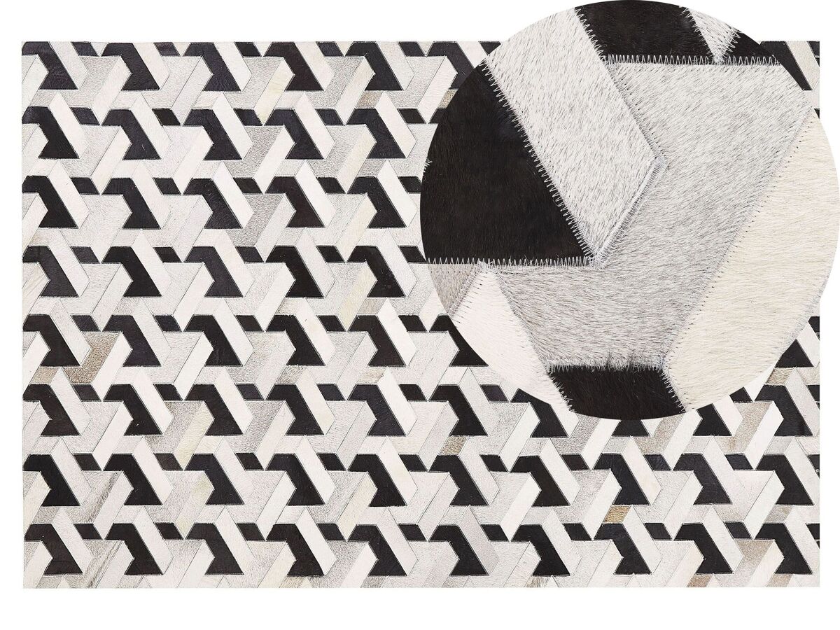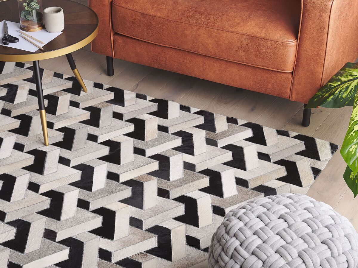Alfombra patchwork. Añade a tu interior esta alfombra patchwork de estilo moderno. Está fabricada a partir de piel de vaca de alta calidad. Las distintas piezas cosidas entre sí dan como resultado un efecto 3D que llama la atención. Combina bien en cualquier espacio industrial o de inspiración retro.