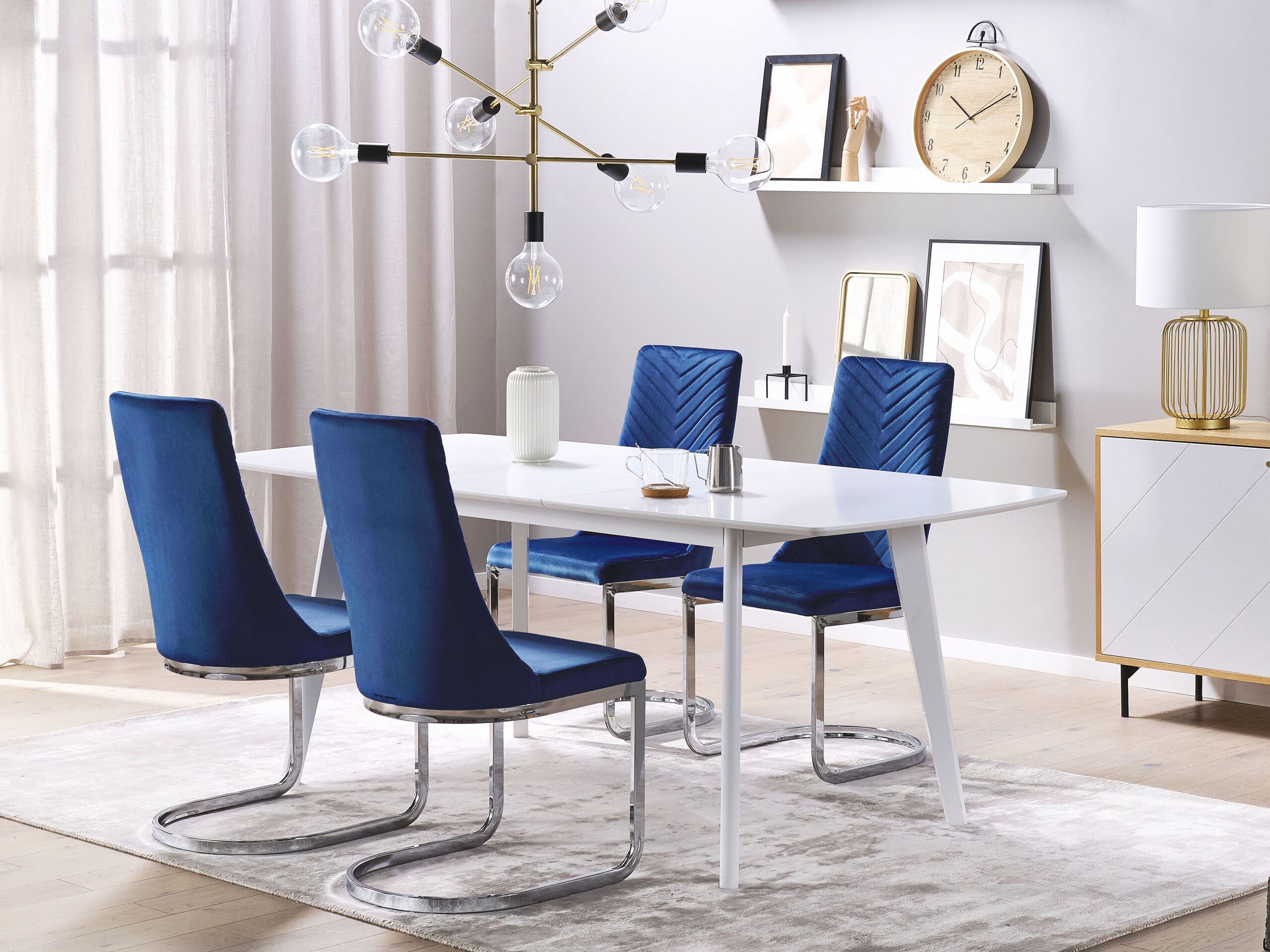 Juego de sillas cantilever. Añade a tu comedor o sala de estar este conjunto de 2 sillas de diseño sofisticado. La estructura brillante y la tapicería de terciopelo suave aportan elegancia y modernidad a cualquier interior. Combina bien con una mesa de comedor de tonalidad clara.