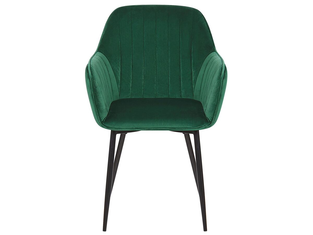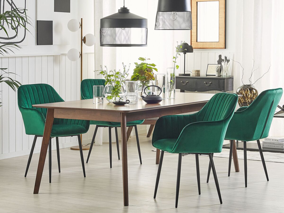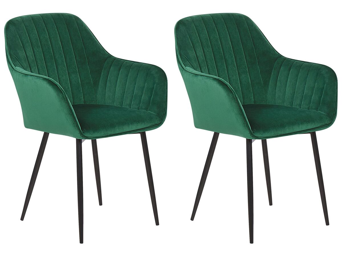 Juego de sillas de diseño. Añade a tu espacio este conjunto de 2 sillas de comedor de diseño elegante. Está fabricado a partir de terciopelo de alta calidad y suave al tacto. La costura vertical en el respaldo, la combinación de colores y las patas de metal aportan un aspecto clásico, ideal para cualquier interior tradicional, moderno o retro.