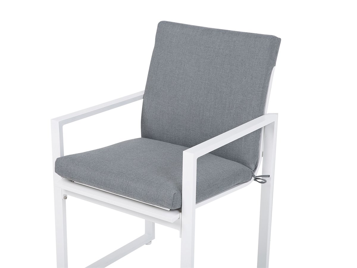 Moderno conjunto de sillas de jardín. Un verdadero placer para aquellos que valoran la comodidad y el estilo. Un conjunto de dos sillas que, gracias a su diseño elegante y moderno combinan fácilmente con una amplia gama de estilos de decoración. Su robusto marco de aluminio crea un ambiente industrial, mientras que los cojines acolchados y gruesos agregan un componente acogedor al atractivo general de los muebles. Resistentes a los rayos UV y al clima, están configurados para brindarte un asiento cómodo en tu jardín durante mucho tiempo.