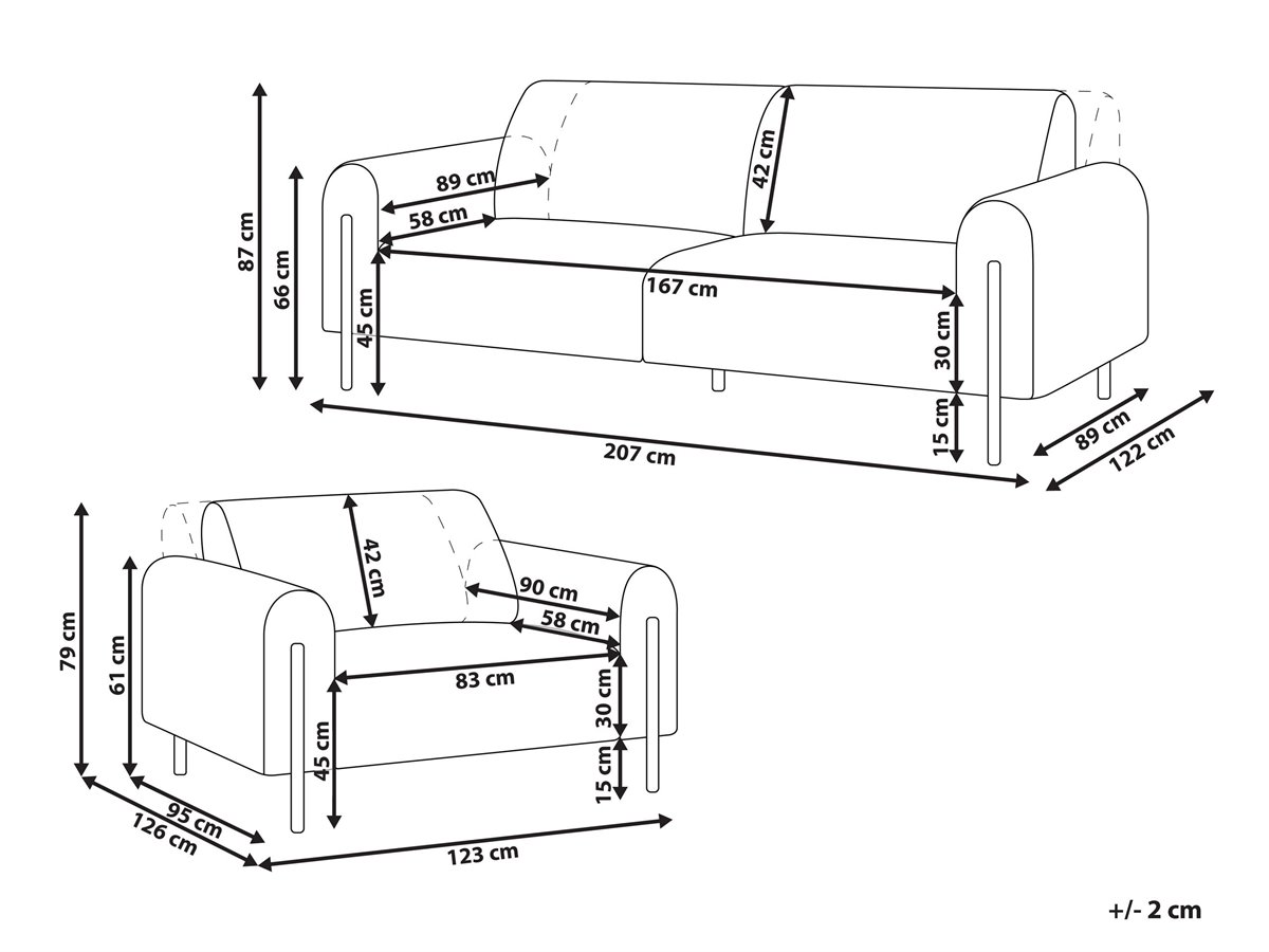 Dimensiones del sofá de 3 plazas: 207x89/122x87