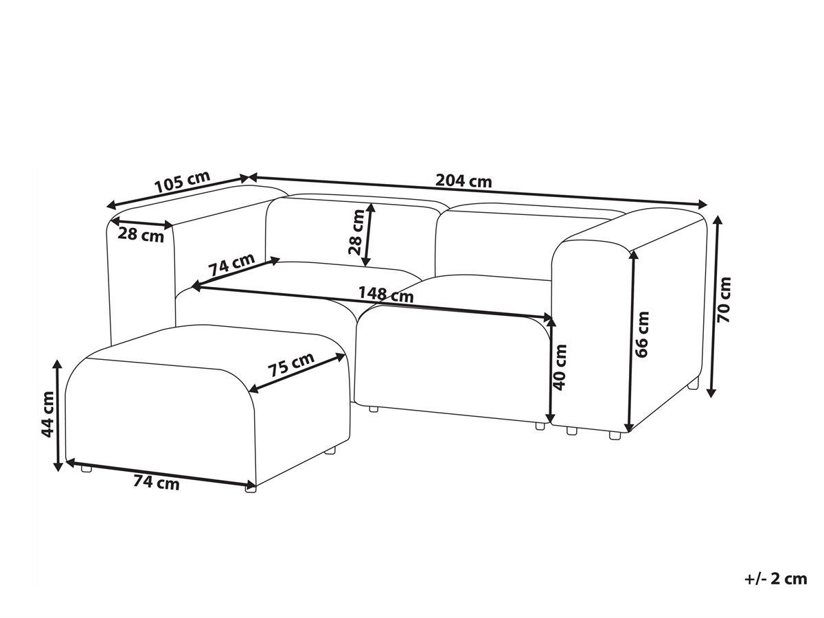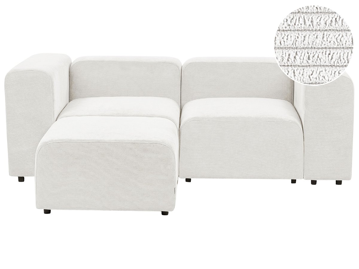 Sofá seccional tapizado con reposapiés. Sumérgete en el lujo minimalista con este sofá de 2 plazas, envuelto en suntuosa pana en un tono versátil que complementa sin esfuerzo cualquier decoración. Sus líneas limpias y sus elegantes reposabrazos exudan elegancia moderna, ofreciendo comodidad y estilo. Completa el conjunto con la otomana incluida, que ofrece versatilidad adicional. Redefine la relajación en tu espacio con esta pieza central discreta pero elegante.