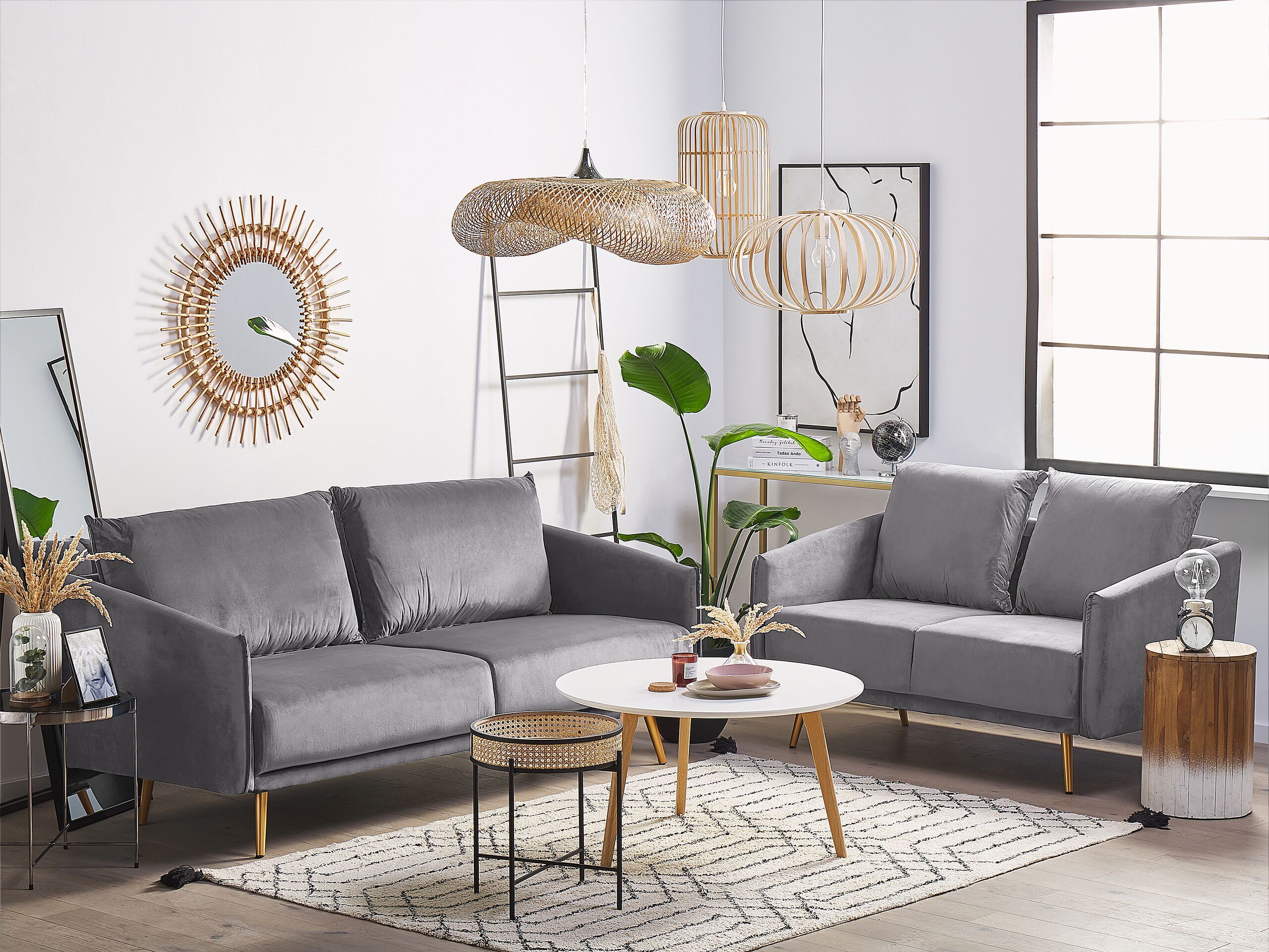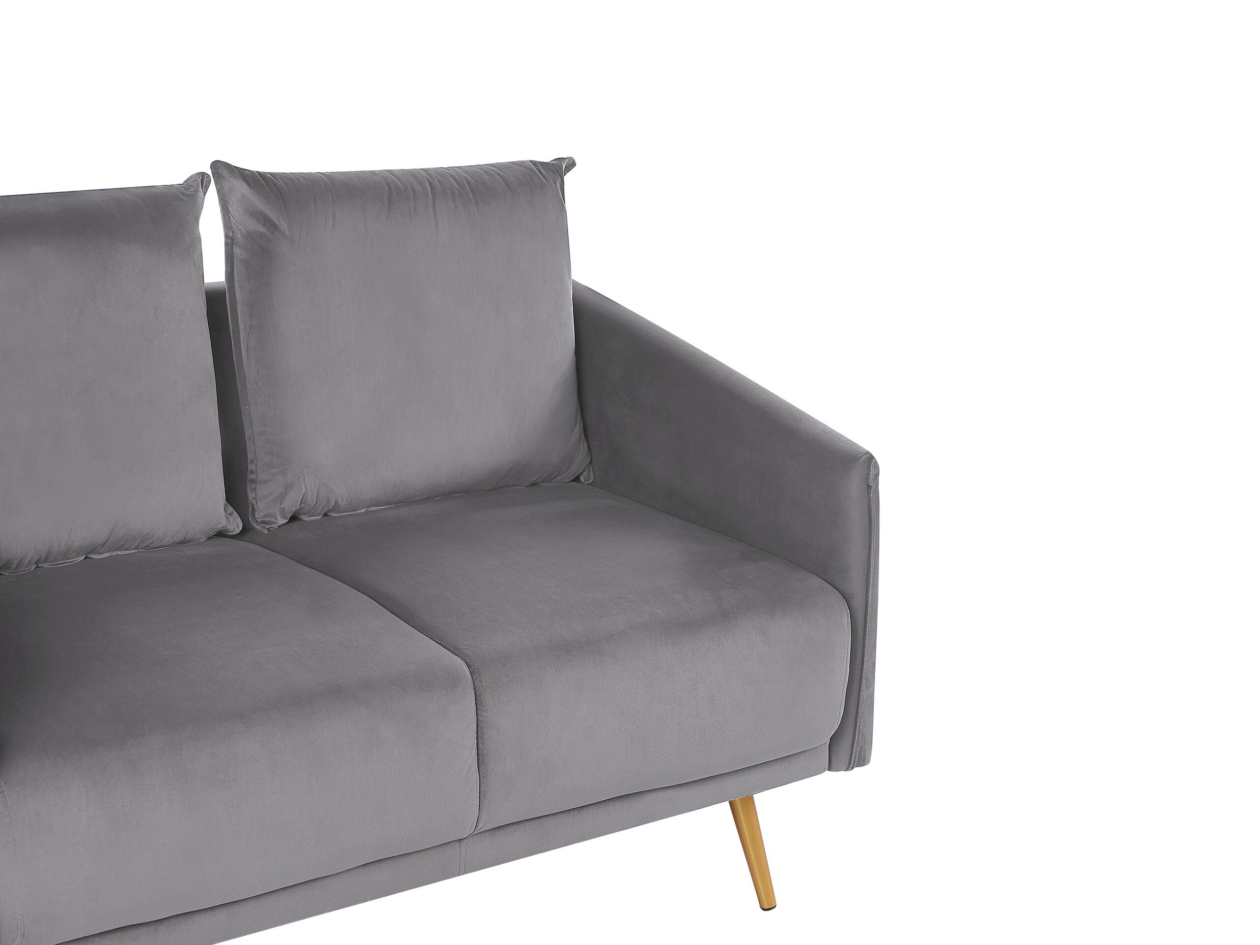 Sofá de 2 plazas. Añade a tu interior este sofá de 2 plazas de diseño elegante. Está fabricado a partir de tela de terciopelo suave al tacto. El relleno de los cojines de respaldo ofrece el mejor descanso. Las patas de metal combinan bien con cualquier sala de estar de estilo glamuroso, boho o retro.