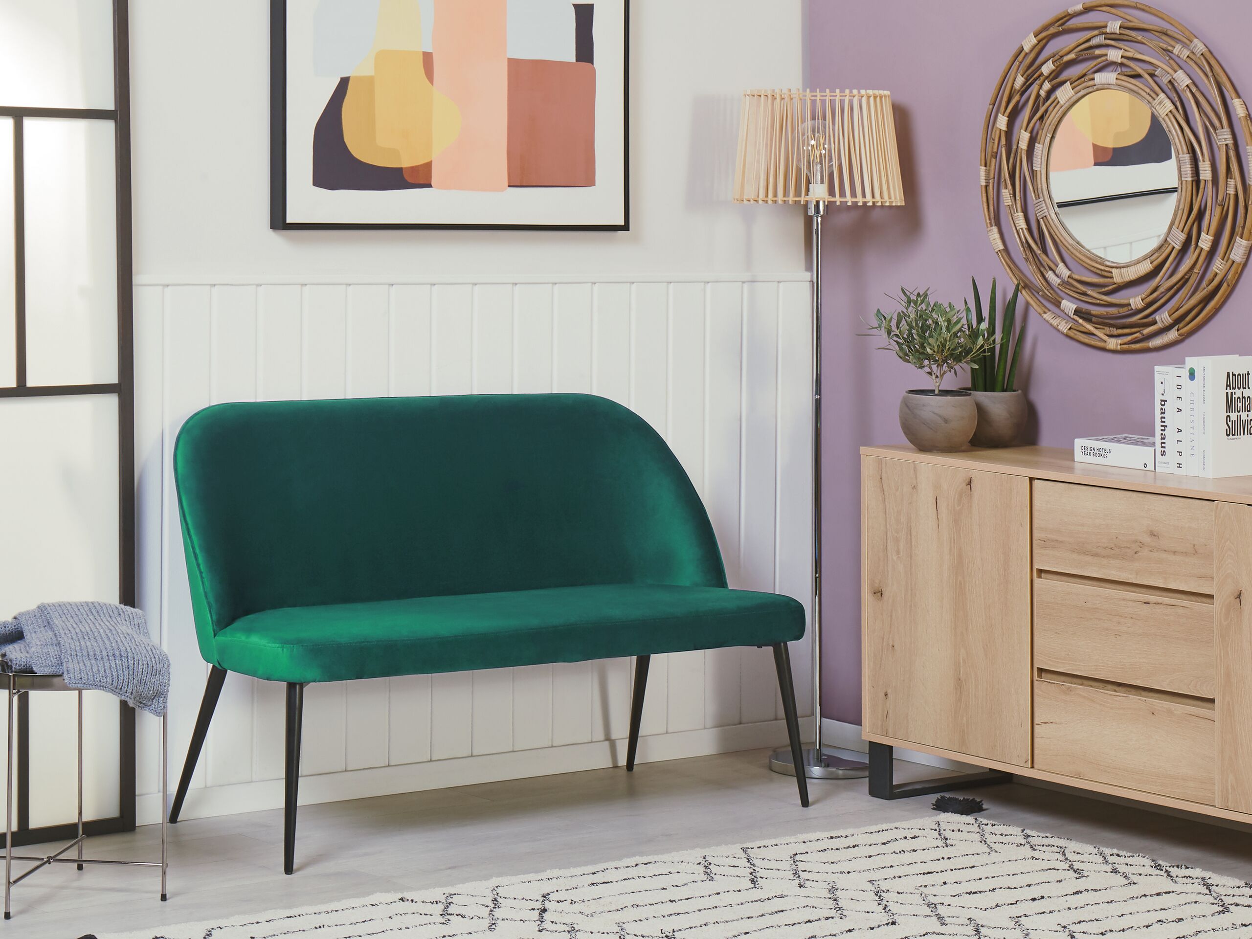 Sofá de cocina. Añade a tu interior este sofá de 2 plazas funcional. Está fabricado a partir de tela de terciopelo de alta calidad. La estructura de metal resistente y las patas finas aportan un toque de distinción a la pieza. Ideal para cualquier cocina, sala de estar u oficina en casa de estilo minimalista.