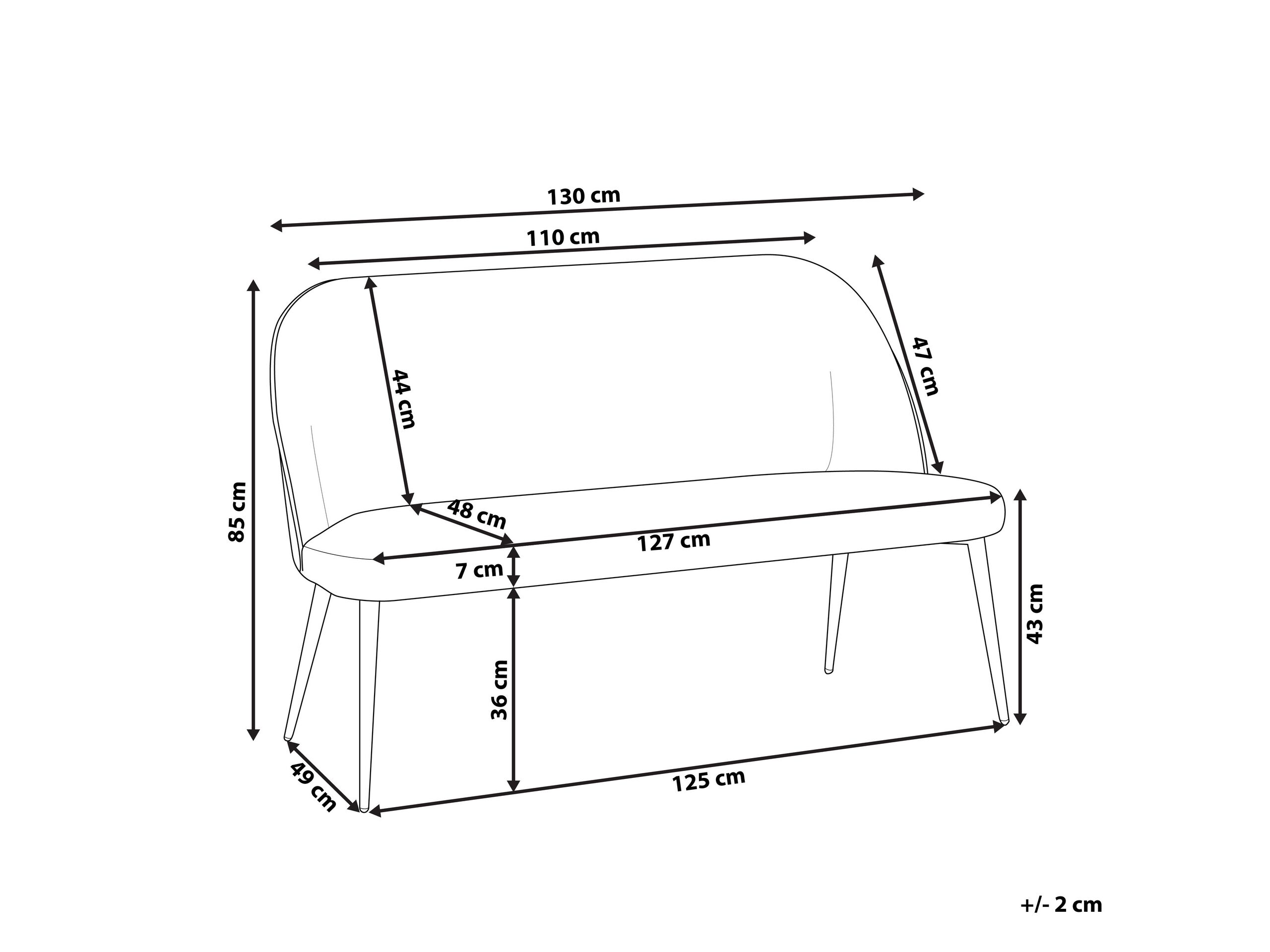 Superficie del asiento: 127x48 cm