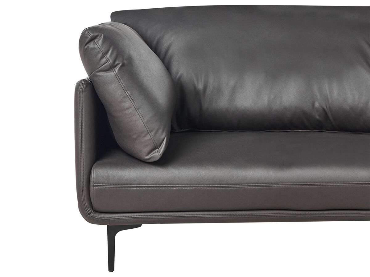 Sofá de estilo industrial. Realza tu salón con este sofá de líneas puras y elegantes, diseñado para ser la pieza central perfecta de interiores inspirados en el estilo moderno o industrial. Tapizado en resistente piel vegana de bajo mantenimiento, ofrece cómodos asientos para tres personas y las robustas patas metálicas proporcionan estabilidad a la vez que añaden un toque de estilo. Los pequeños cojines adicionales garantizan un apoyo extra para una experiencia realmente relajante.