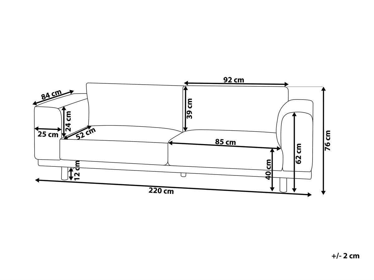 Sofá 3 plazas. Dale un toque vintage a tu sala de estar con este sofá de 3 plazas. Está fabricado a partir de poliéster de alta calidad. Las formas simétricas, los materiales utilizados en su fabricación, la superficie de asiento profunda, los cojines de respaldo y los reposabrazos anchos ofrecen la máxima comodidad. Las patas de madera maciza garantizan estabilidad.