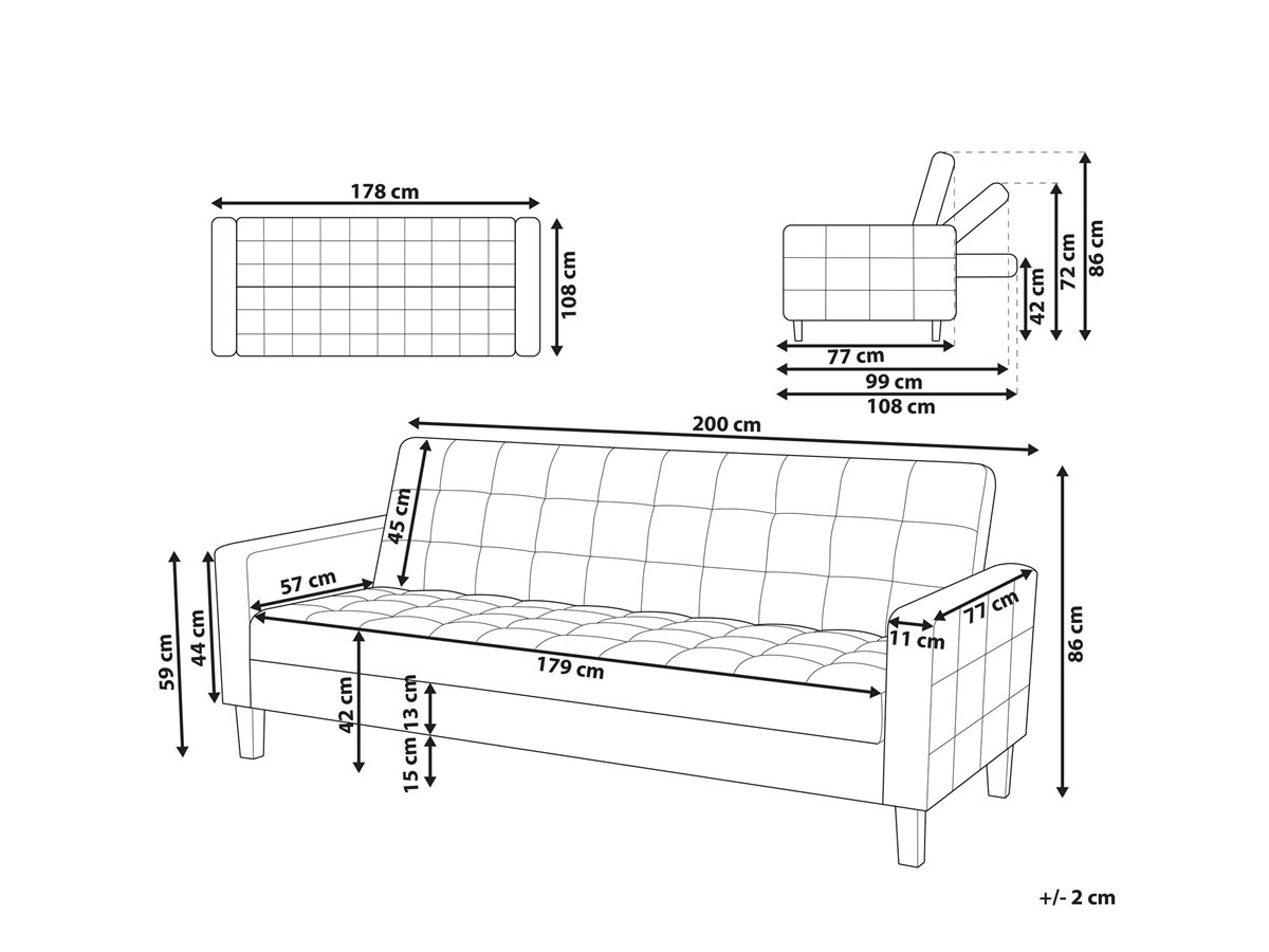 Ventajas: Se convierte en cómoda cama, Respaldo ajustable en 3 posiciones, Diseño atemporal, Combina con todo tipo de decoración, Alta calidad, Espacio de almacenaje adicional