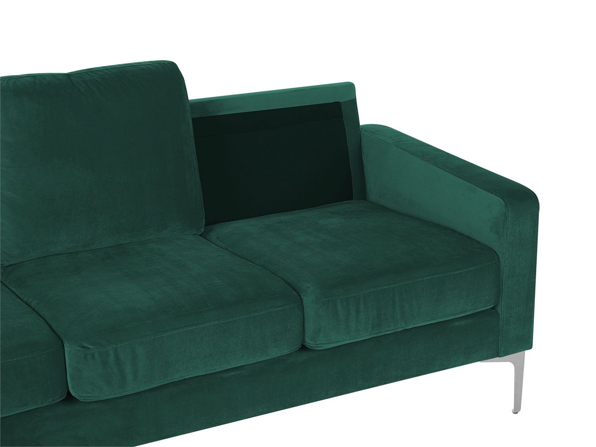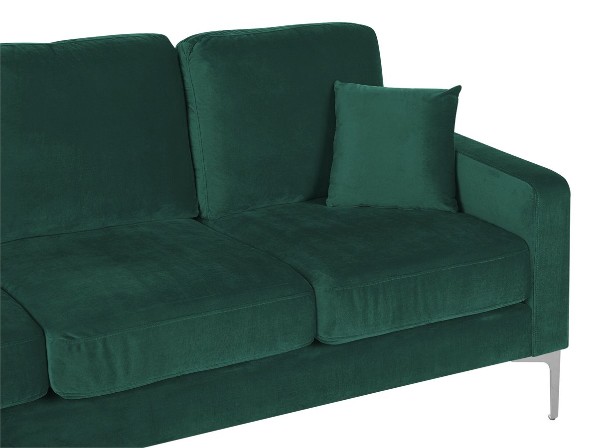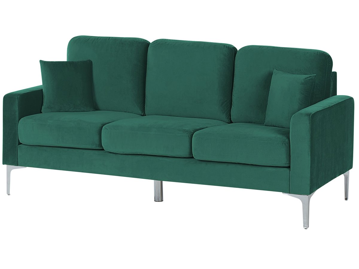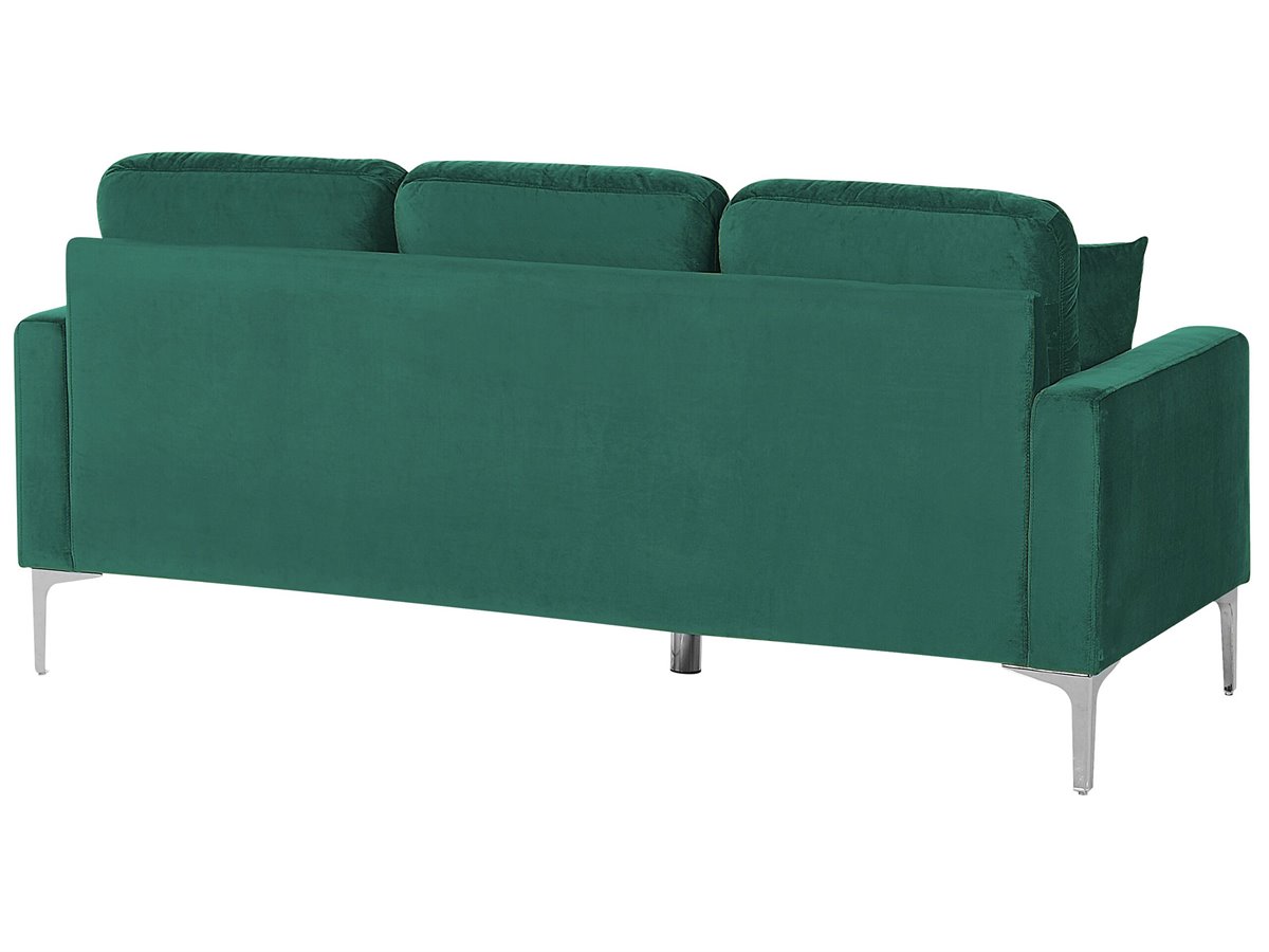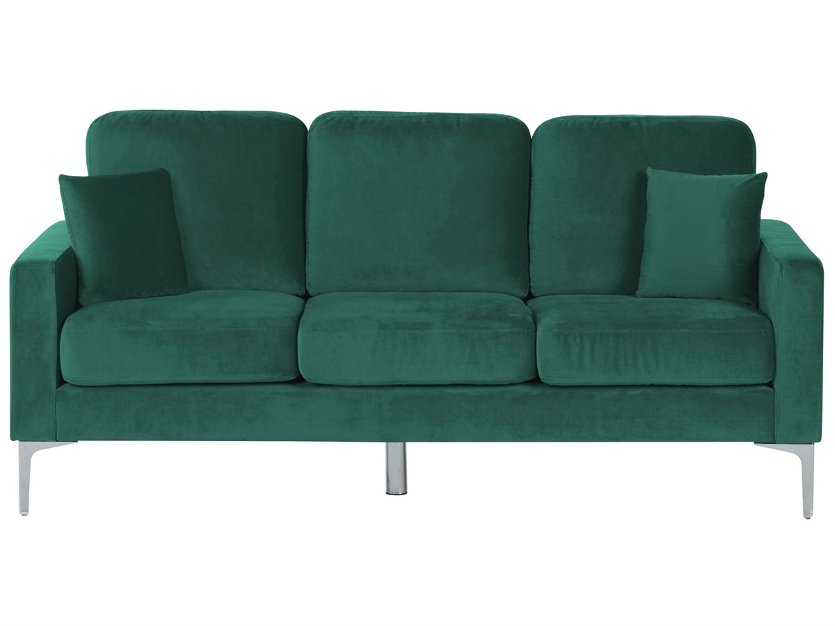 Sofá de terciopelo. Añade a tu interior este sofá de 3 plazas de diseño elegante. Está fabricado a partir de terciopelo de alta calidad. Los cojines de asiento y el respaldo acolchado ofrecen la máxima comodidad. Las patas de metal aportan un toque industrial a la pieza. Encaja bien en cualquier habitación o loft minimalista.