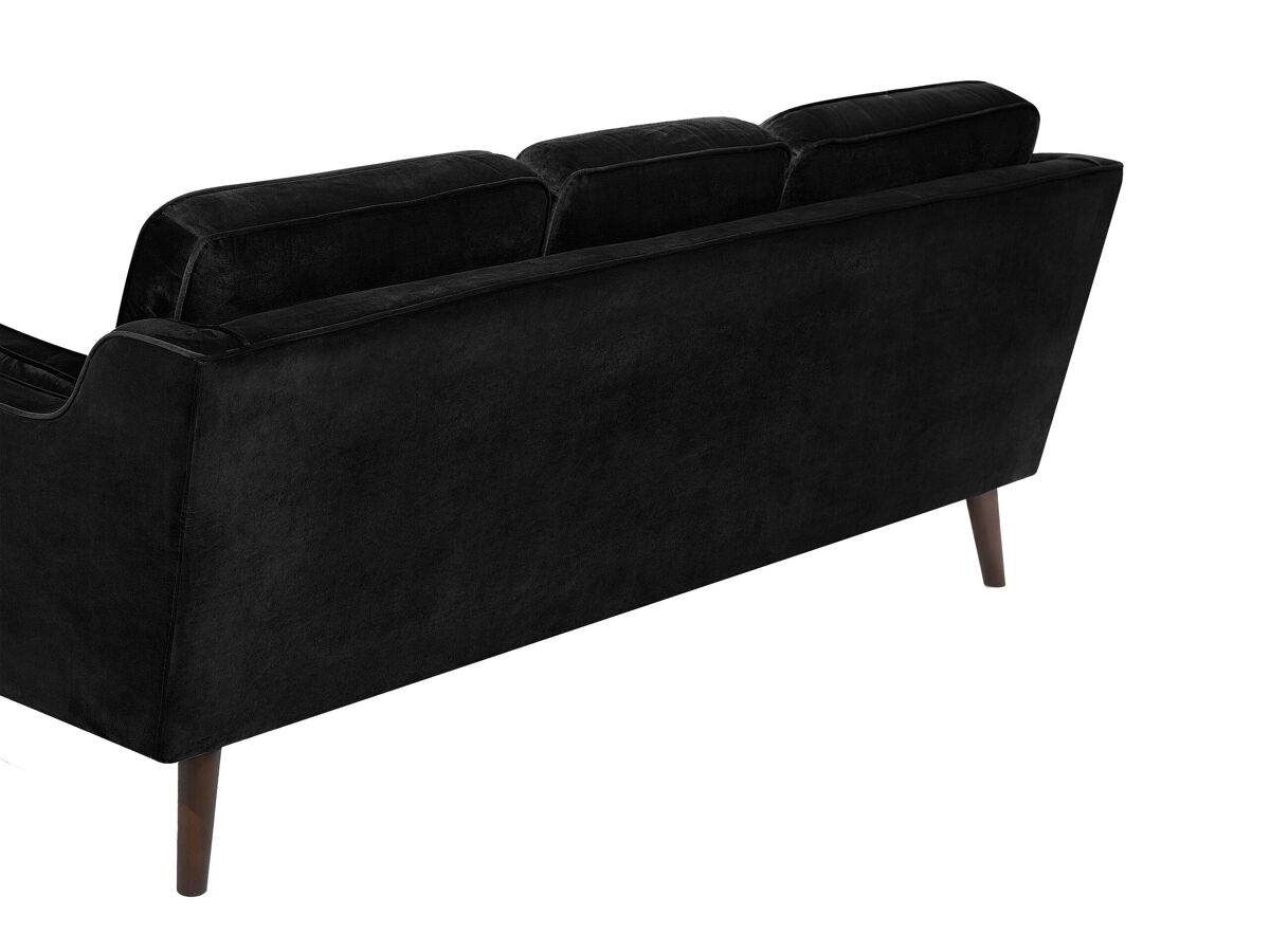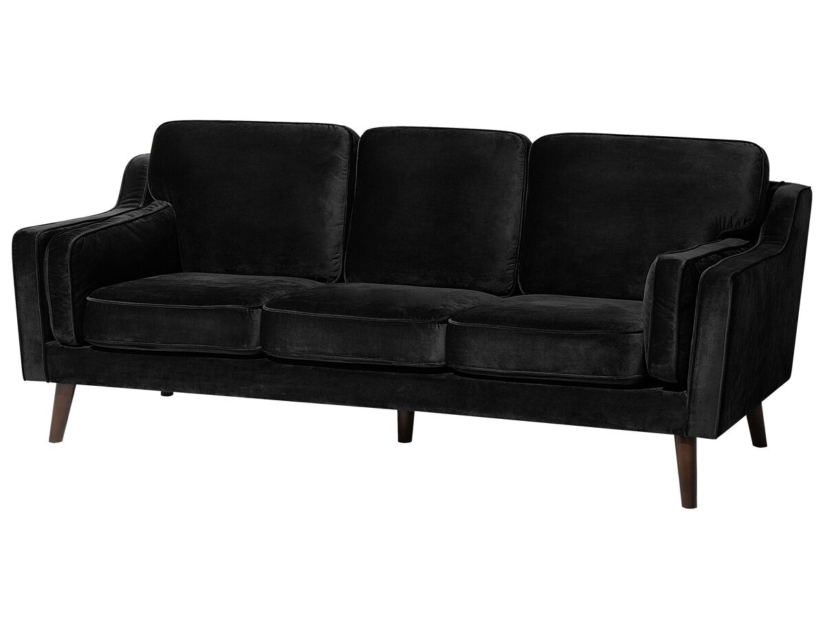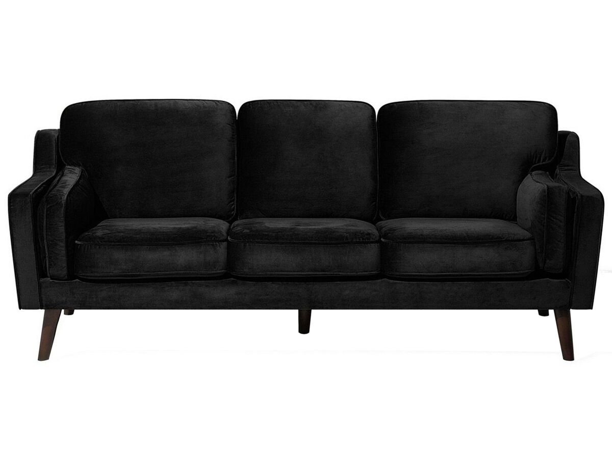 Sofá 3 plazas de terciopelo. Este sofá de 3 plazas combina bien con cualquier interior moderno o tradicional. Está fabricado a partir de terciopelo suave al tacto. Los reposabrazos dobles garantizan la mayor comodidad de asiento. Los cojines acolchados vienen con fundas extraíbles. Las patas de madera de roble aportan un estilo de mediados de siglo.