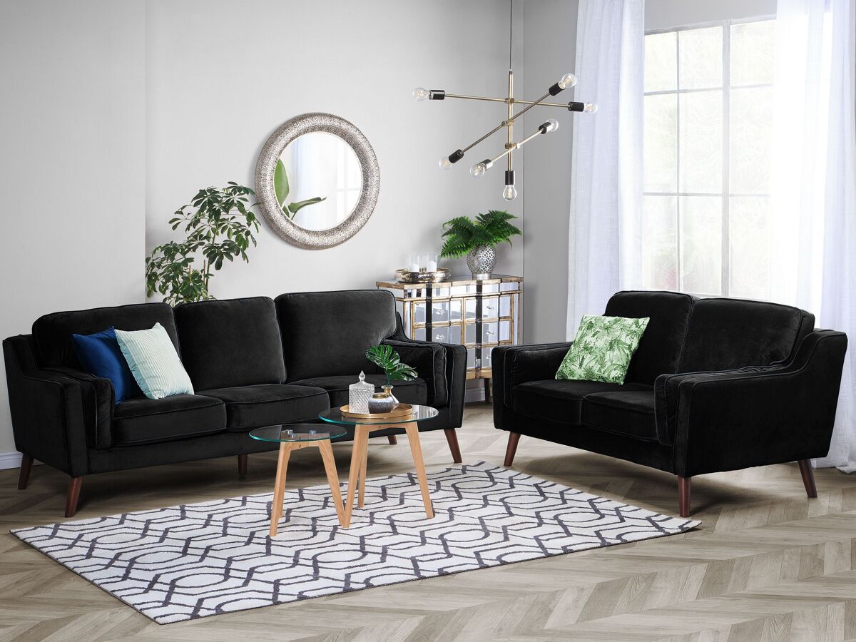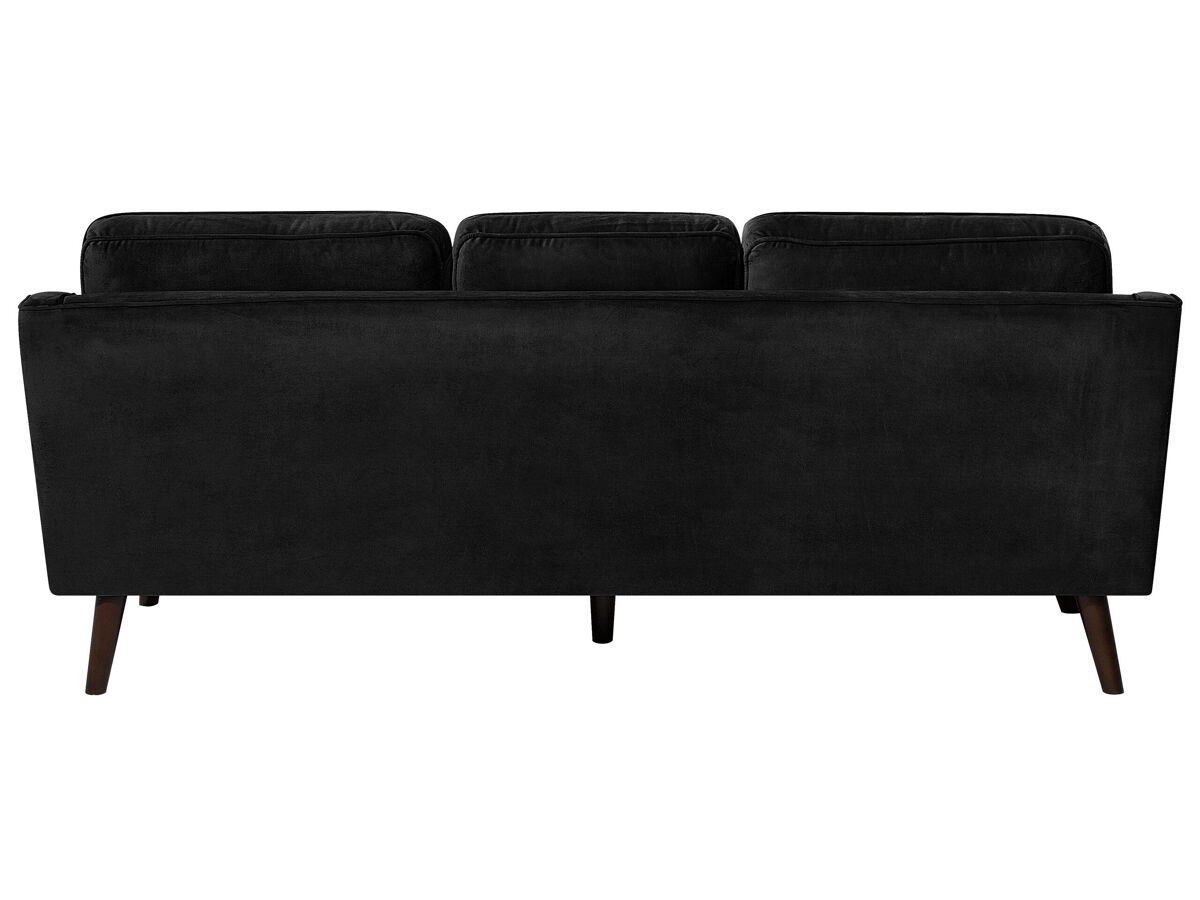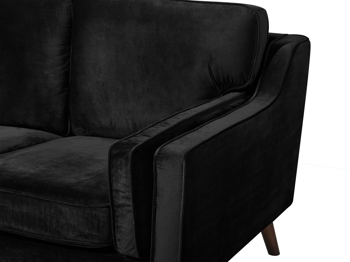 Sofá 3 plazas de terciopelo. Este sofá de 3 plazas combina bien con cualquier interior moderno o tradicional. Está fabricado a partir de terciopelo suave al tacto. Los reposabrazos dobles garantizan la mayor comodidad de asiento. Los cojines acolchados vienen con fundas extraíbles. Las patas de madera de roble aportan un estilo de mediados de siglo.