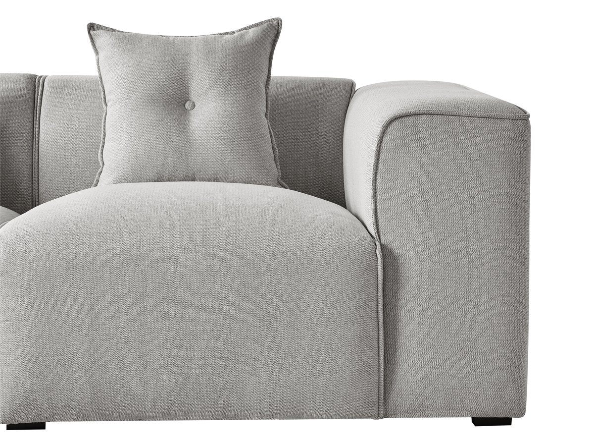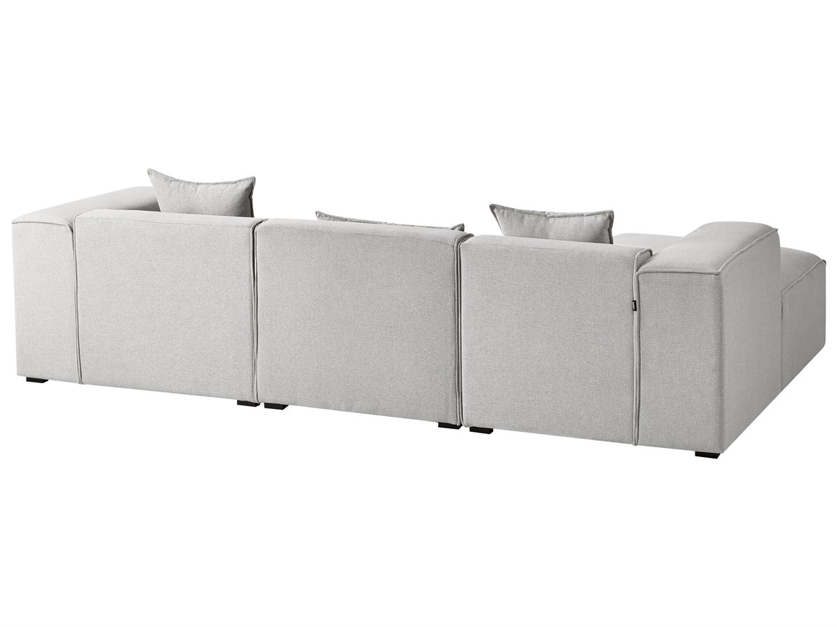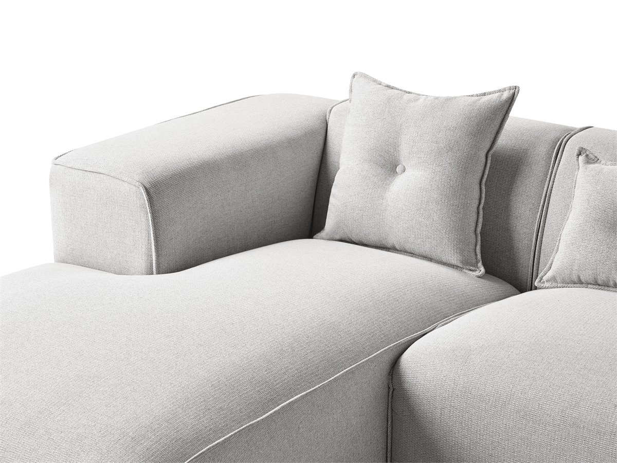 Sofá seccional rinconero. Un sofá con tumbona que se convierte instantáneamente en la pieza central de cualquier salón moderno, tradicional o minimalista. Su robusta estructura de madera y sus patas sintéticas garantizan su longevidad, mientras que la suave tapicería recubre gruesas capas de espuma que garantizan un cómodo asiento. Las líneas elegantes y el diseño sencillo del sofá se enriquecen con tres cojines que añaden un encanto hogareño.