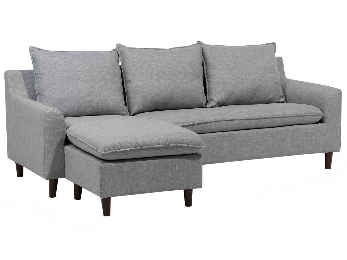 Cómodo sofá tapizado. Este sofá esquinero combina un estilo clásico con un toque moderno, con un diseño reversible que permite colocar la otomana a ambos lados. Complementa tanto la decoración tradicional como la contemporánea, con una tapicería duradera en un elegante color que se complementa con esbeltas patas de madera de caucho. Un asiento de espuma gruesamente acolchado y un respaldo suelto formado por tres grandes cojines hacen que este sofá sea perfecto para quienes aprecian un alto nivel de confort.