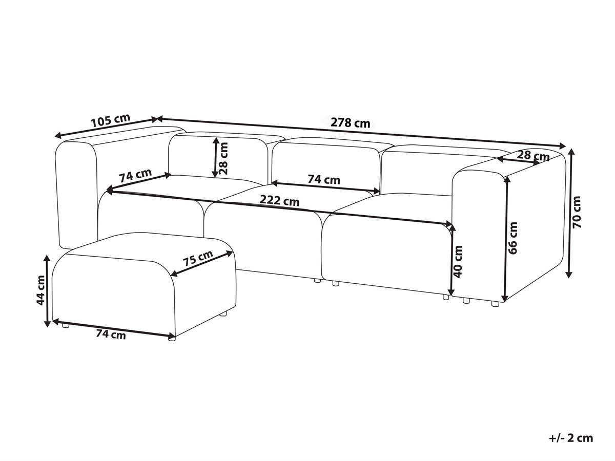 Ventajas: Piezas modulares para configurarlo a tu gusto, Los clips conectores de fácil sujeción mantienen los módulos unidos, Muy cómodo, Ideal para todo tipo de decoración, Materiales de la más alta calidad, Completamente tapizado