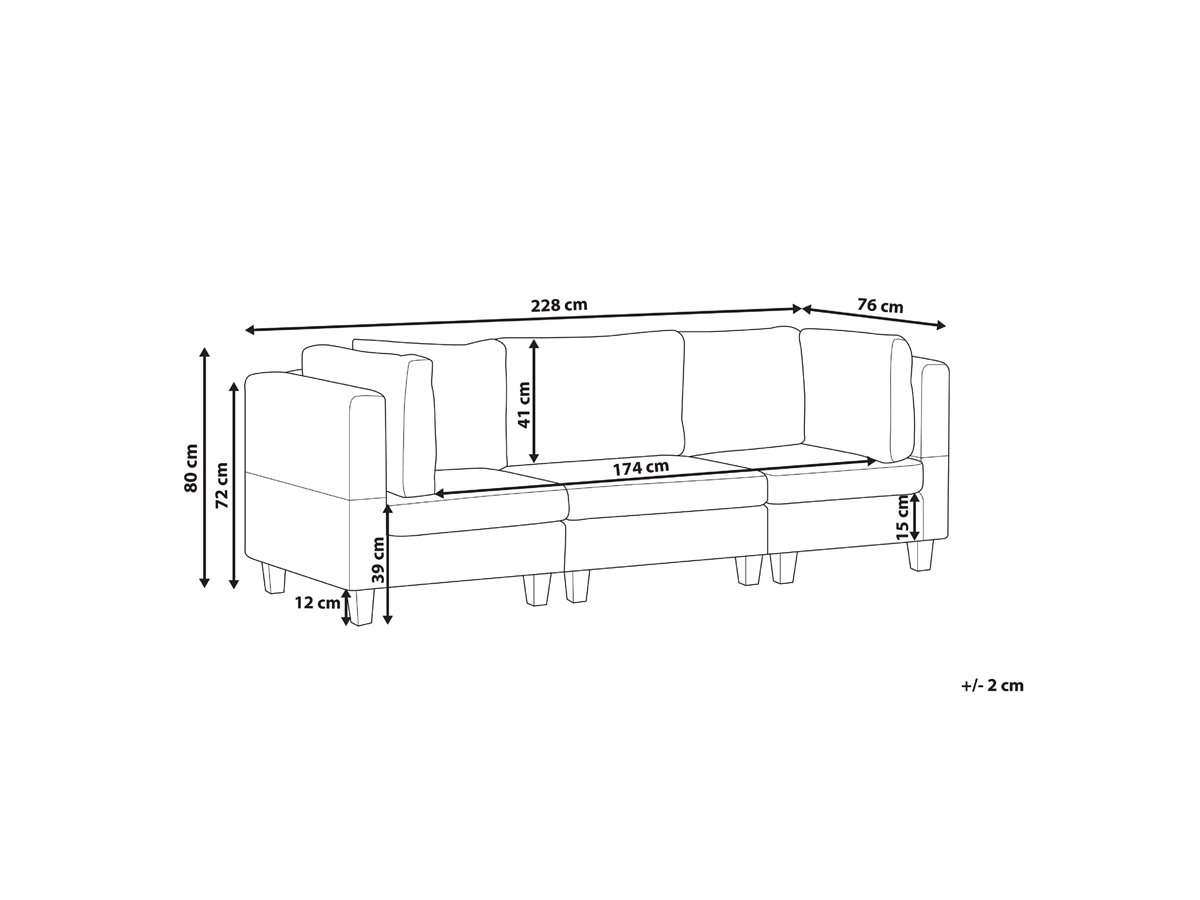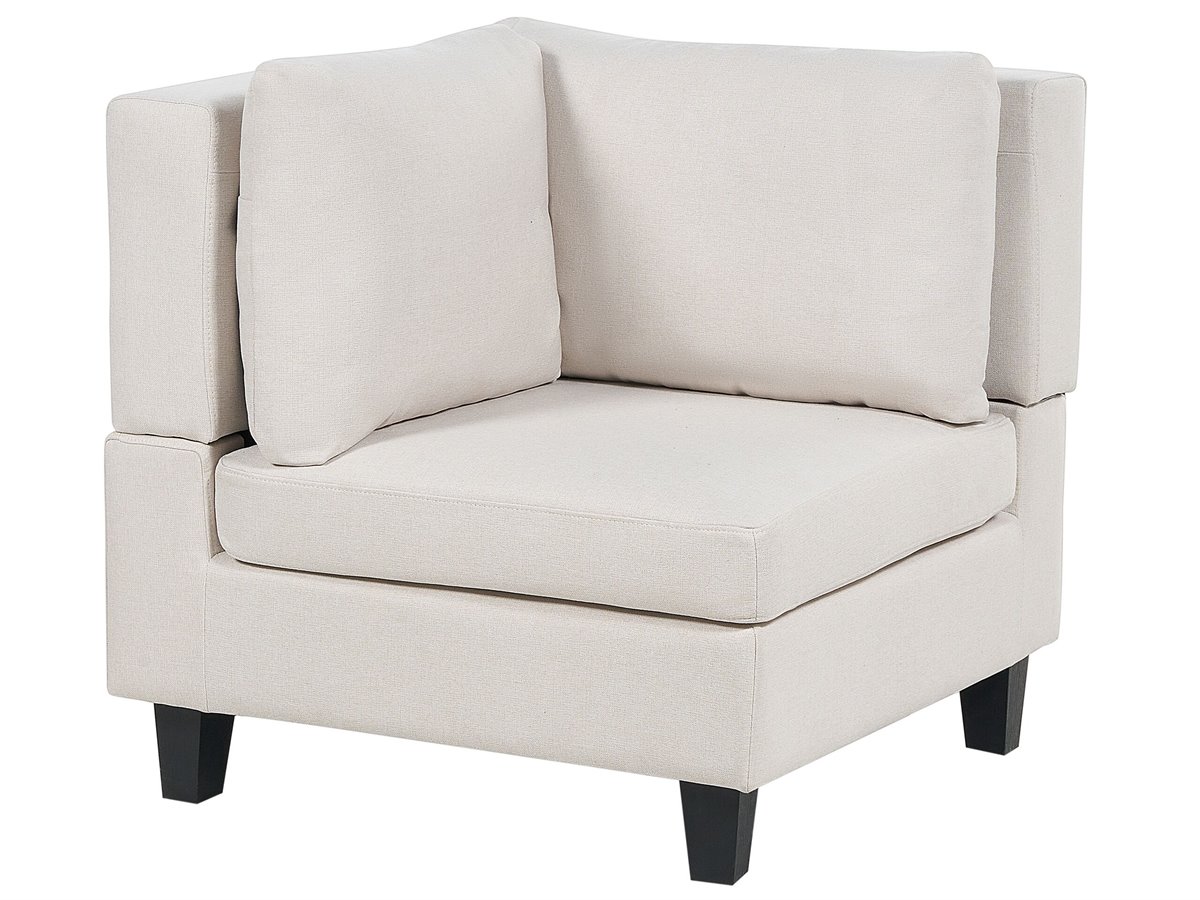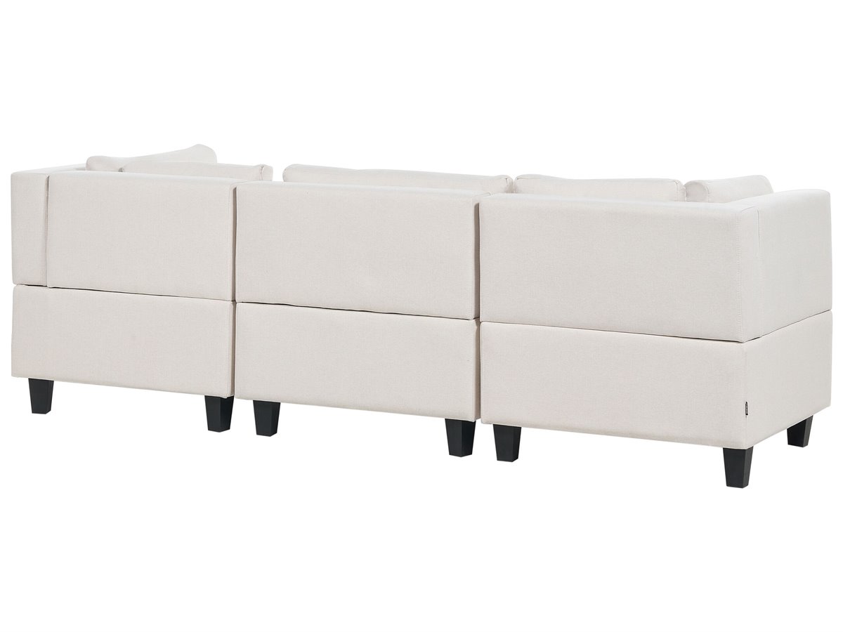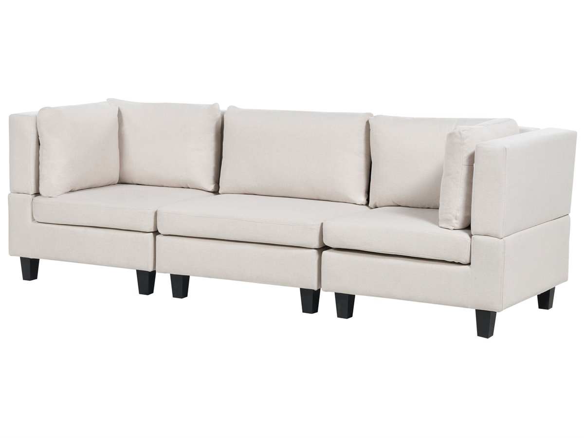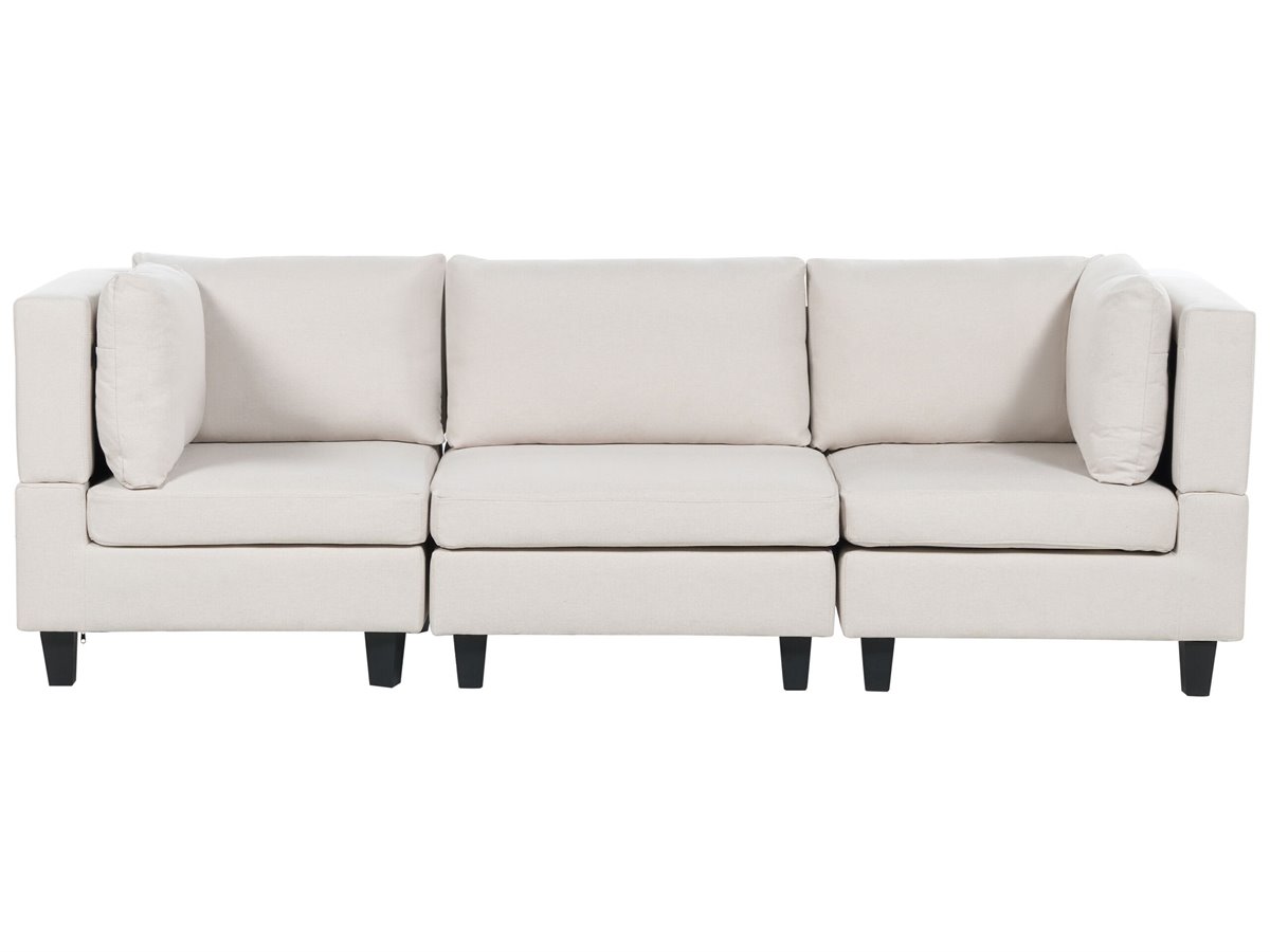 Sofá seccional tapizado. Este sofá modular tapizado va a transformar tu salón en una zona de descanso. El conjunto se compone de varios módulos, que puedes conectar entre sí, para conseguir un sofá clásico y recto, o utilizarlos como muebles independientes que ofrecen espacio adicional para sentarse. Todas las piezas están recubiertas de un suave tejido de poliéster de alta calidad, que recuerda al lino por su aspecto, por lo que sin duda atraerá las miradas de todos sus invitados. La construcción también es muy estable gracias a las patas sintéticas, y el grueso acolchado garantiza la comodidad.