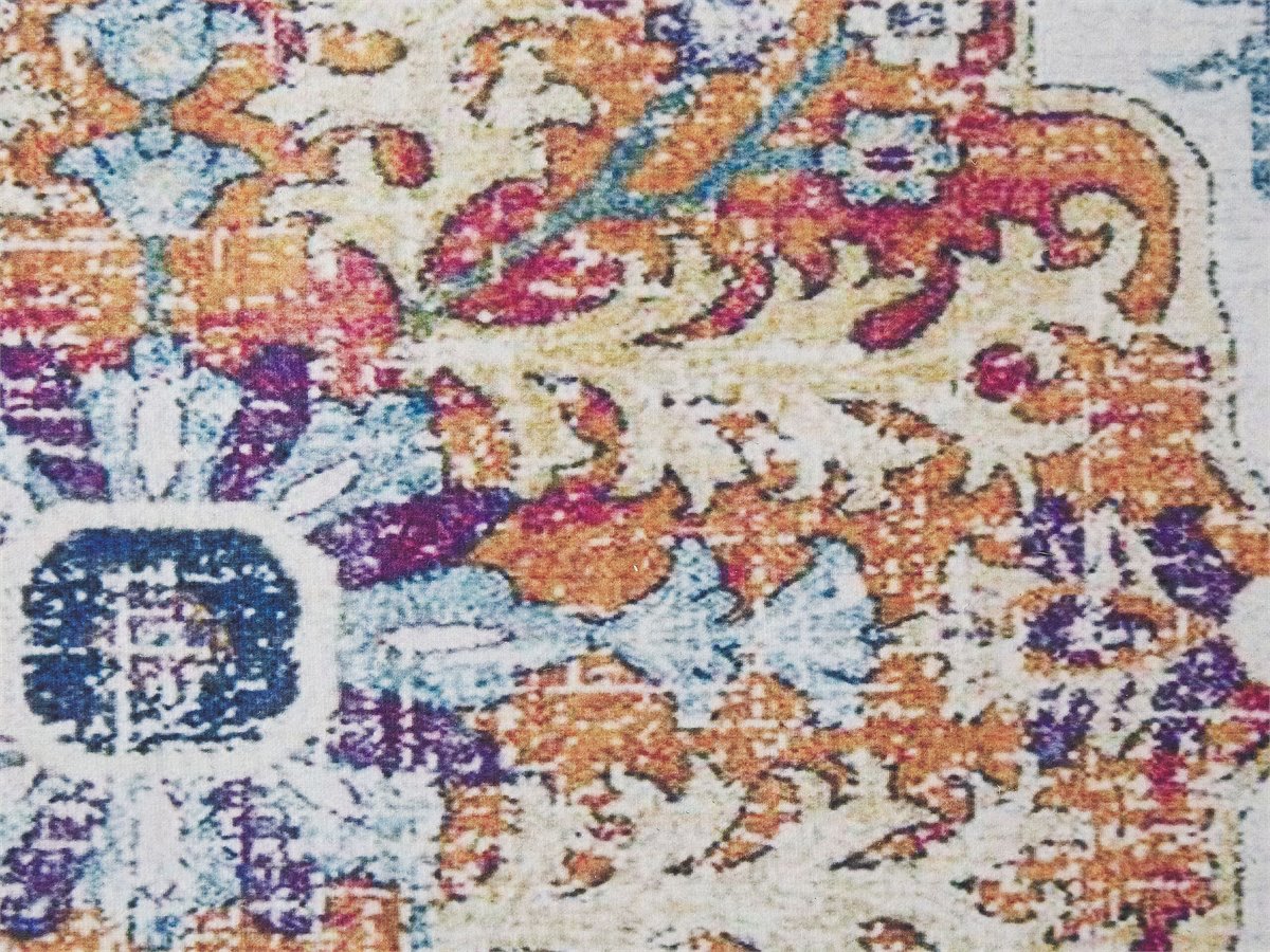Alfombra de diseño retro. Añade un toque vintage a tu interior con esta alfombra de inspiración oriental. Está fabricada a partir de poliéster de alta calidad y suave al tacto. El patrón floral de aspecto envejecido combina bien con cualquier interior moderno. La parte antideslizante protege de un posible resbalón. Ideal para las habitaciones más concurridas de la casa.
