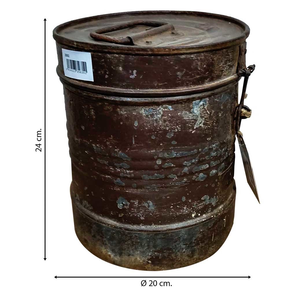 Este bidón no es simplemente un contenedor funcional, sino una obra maestra que fusiona la durabilidad del metal con la autenticidad de un proceso artesanal cuidadosamente ejecutado.