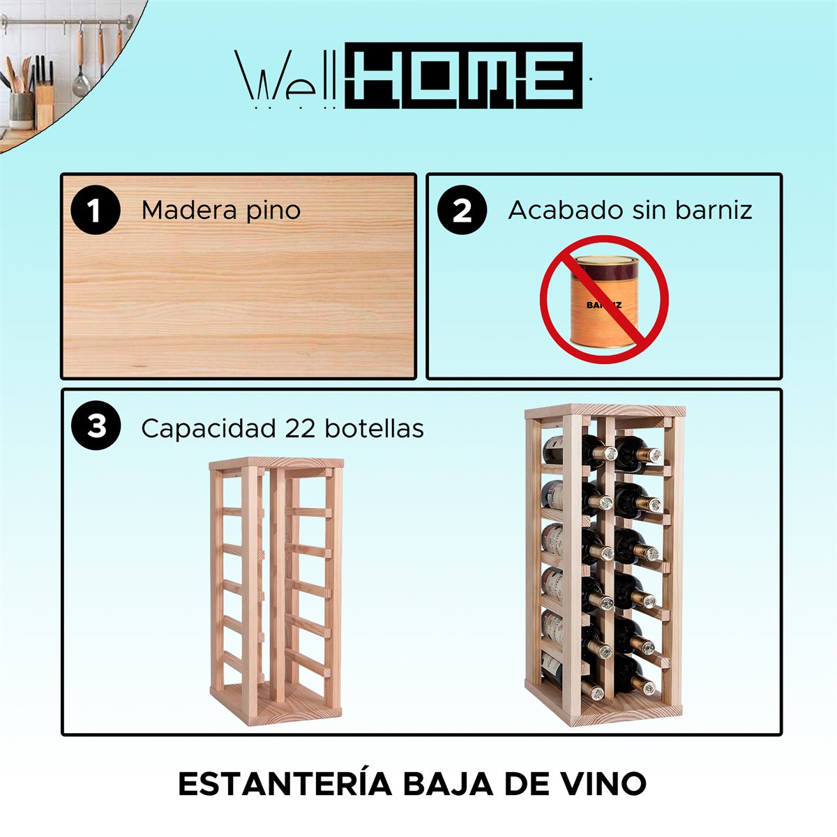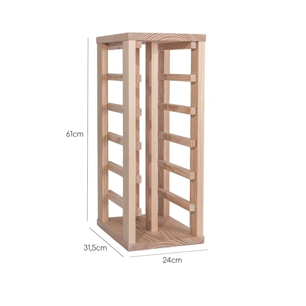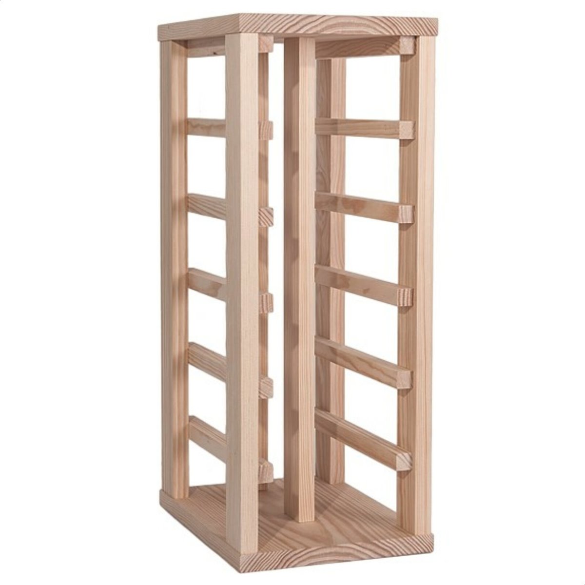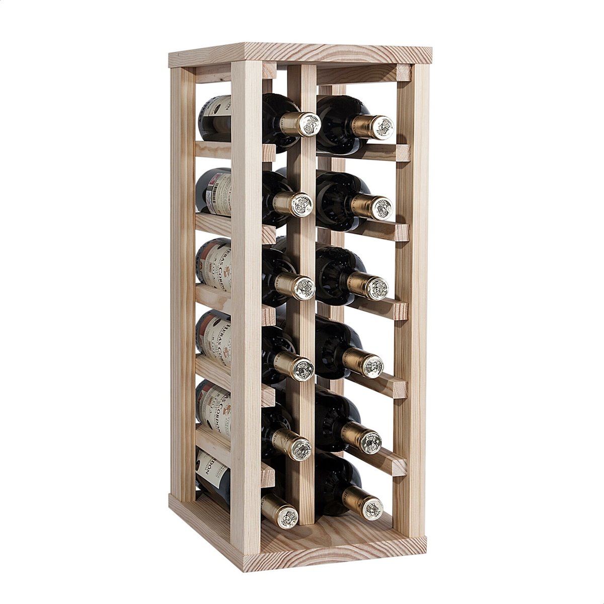 Botellero estante bajo, fabricado en madera de pino, acabado sin barniz, preparado para 12 botellas (L:24 x F:31,5 x H:61)cm