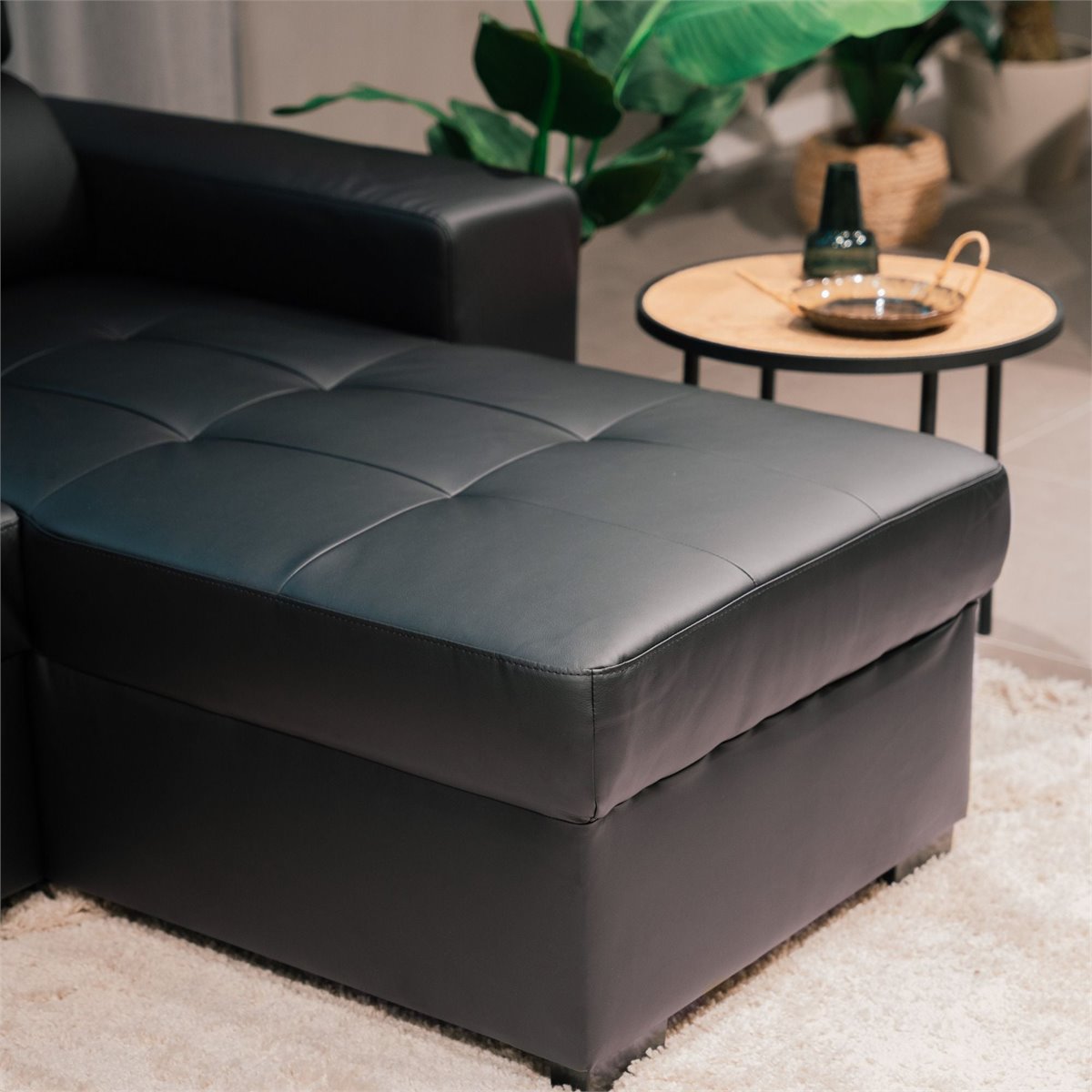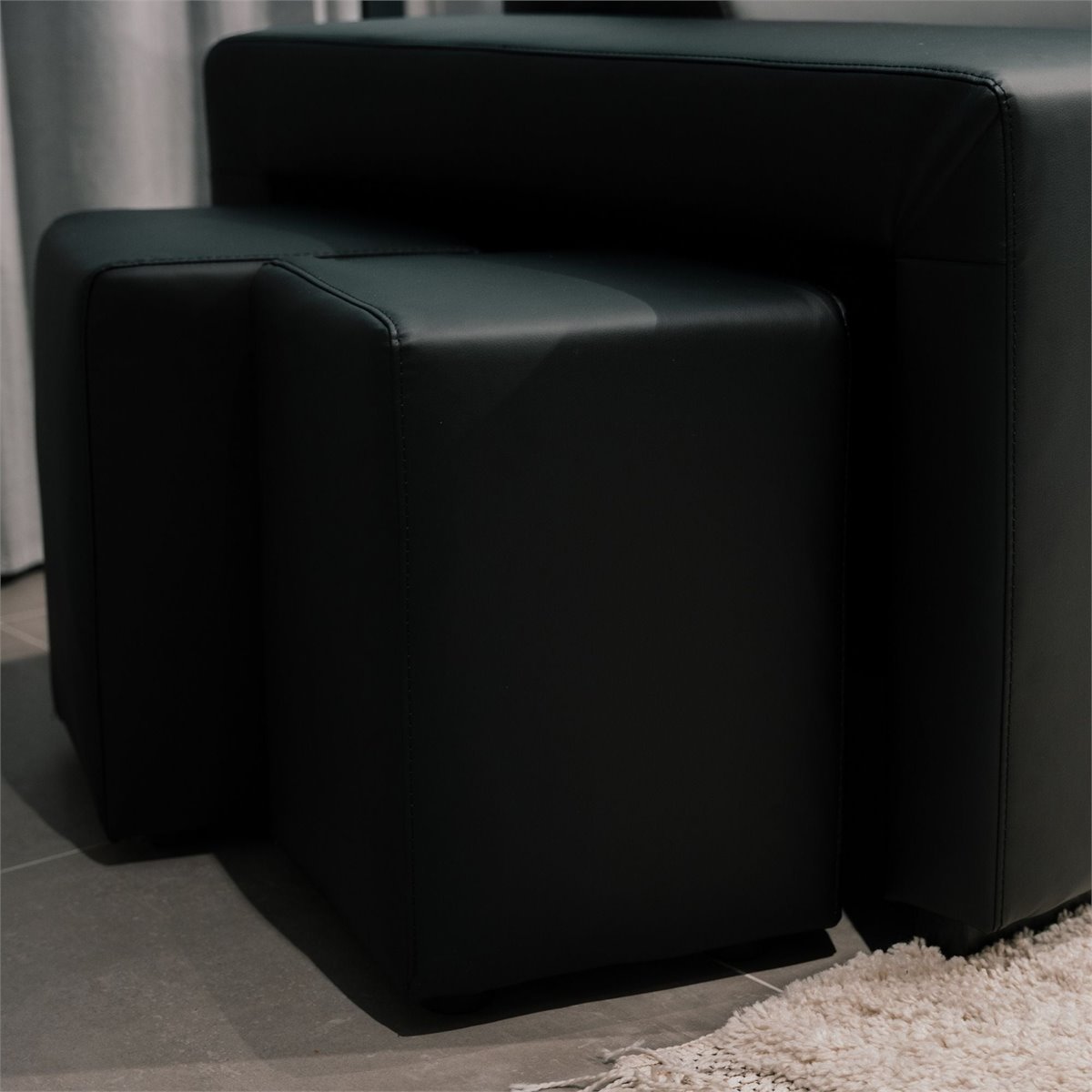 - Ofrece un asiento espacioso, chaise longue reversible y 2 puffs para el máximo confort.