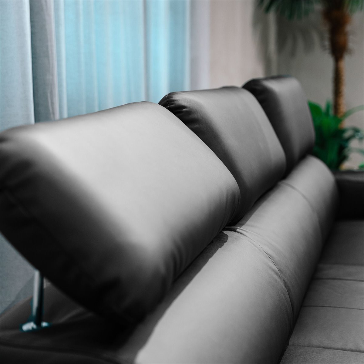 - Revestimiento apto para mascotas en gris claro y oscuro, que garantiza la practicidad para quienes buscan un sofá resistente en el día a día.