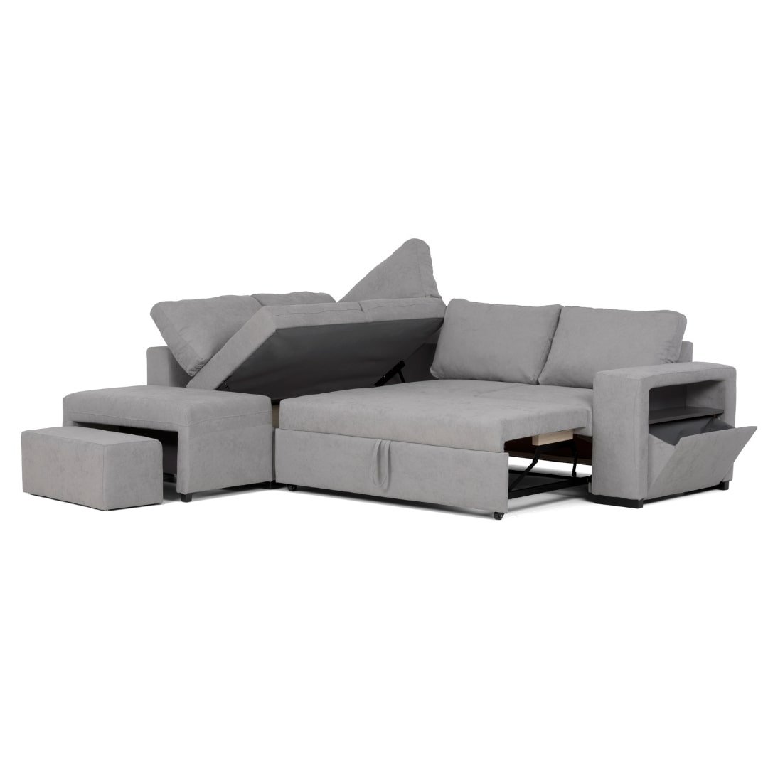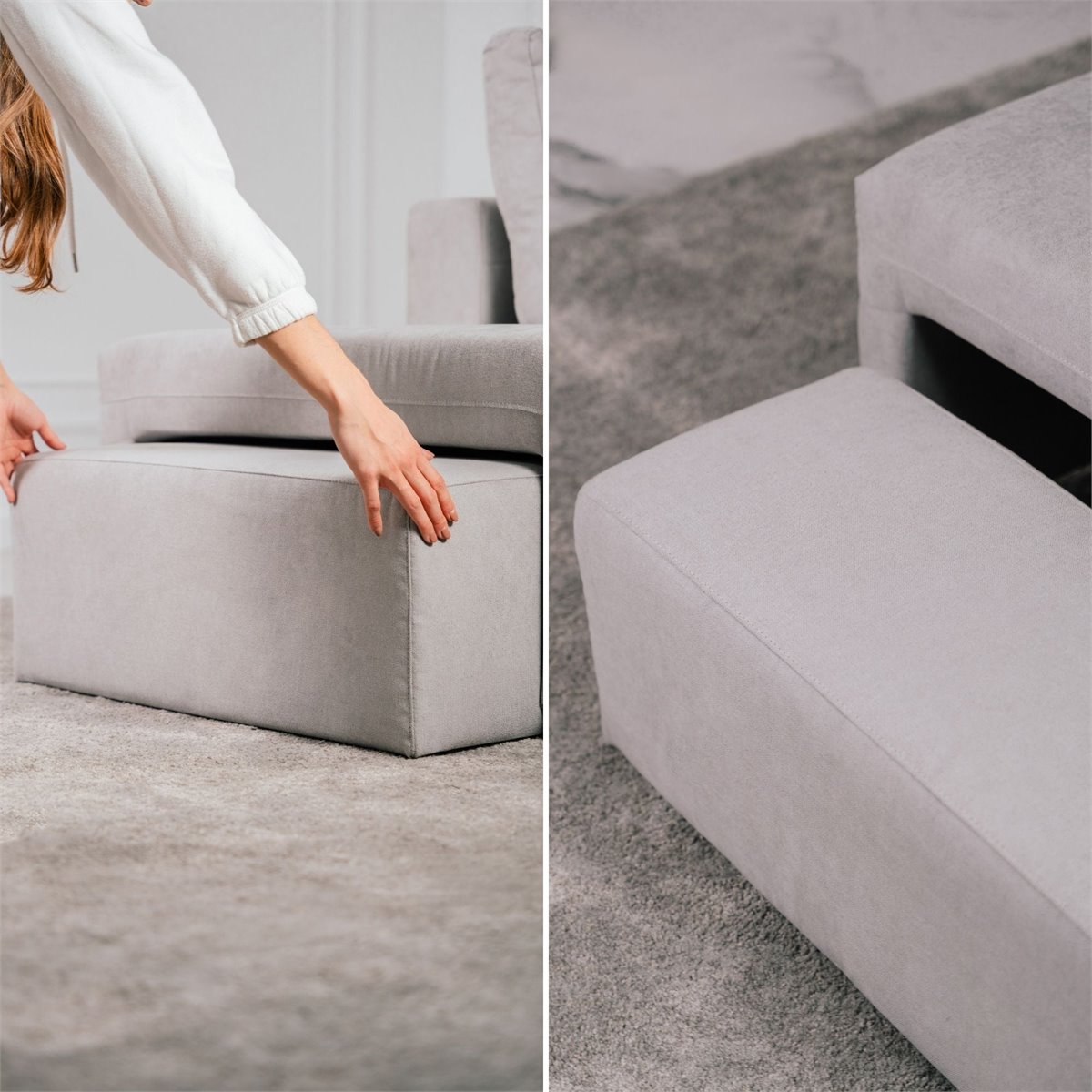 - Incluye cojines sueltos y dos puffs, así como espacios de almacenamiento integrados, ofreciendo comodidad y funcionalidad en un diseño moderno.