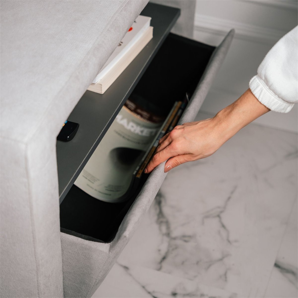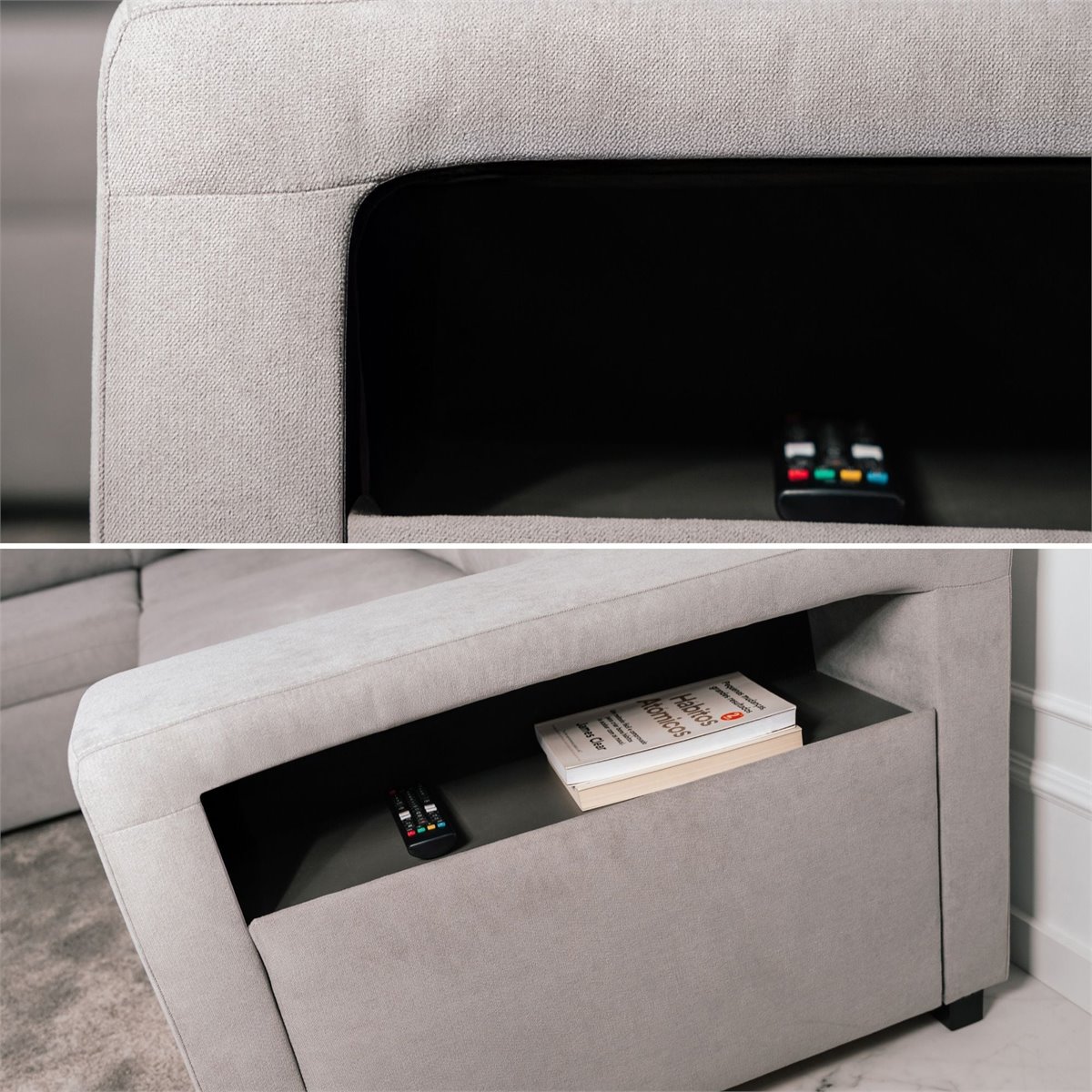 - Combina organización, comodidad y estilo en una sola pieza. Mantén tu salón ordenado con los espacios de almacenamiento integrados, ideales para guardar mantas, cojines y otros objetos esenciales.