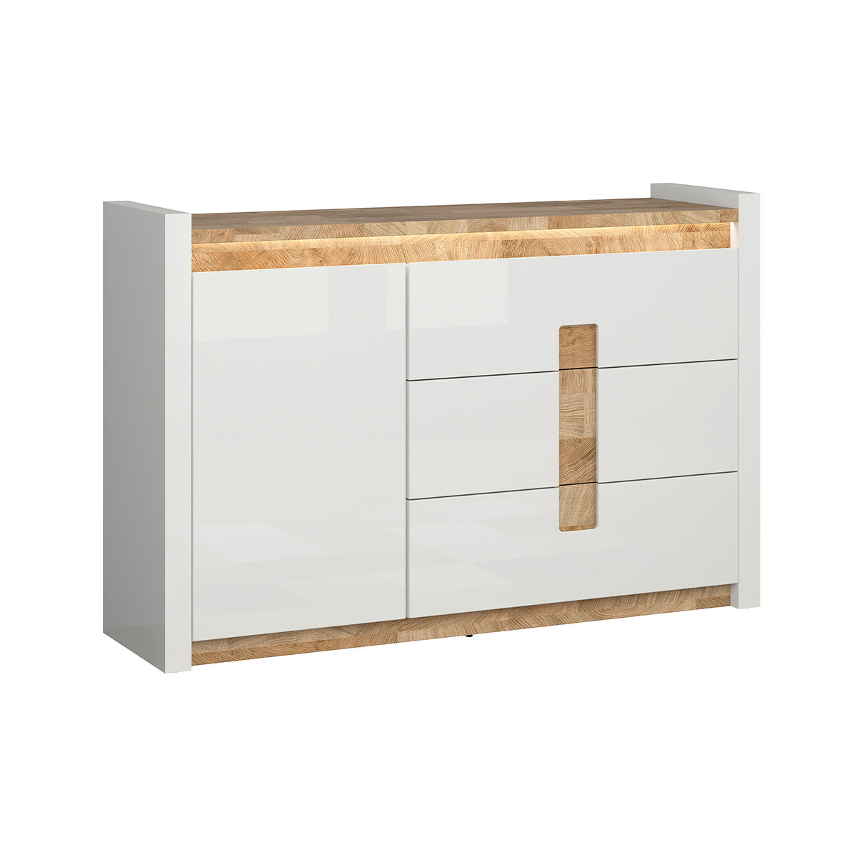 Bufé 1 puerta 3 cajones con LED Helios Blanco lacado y Madera