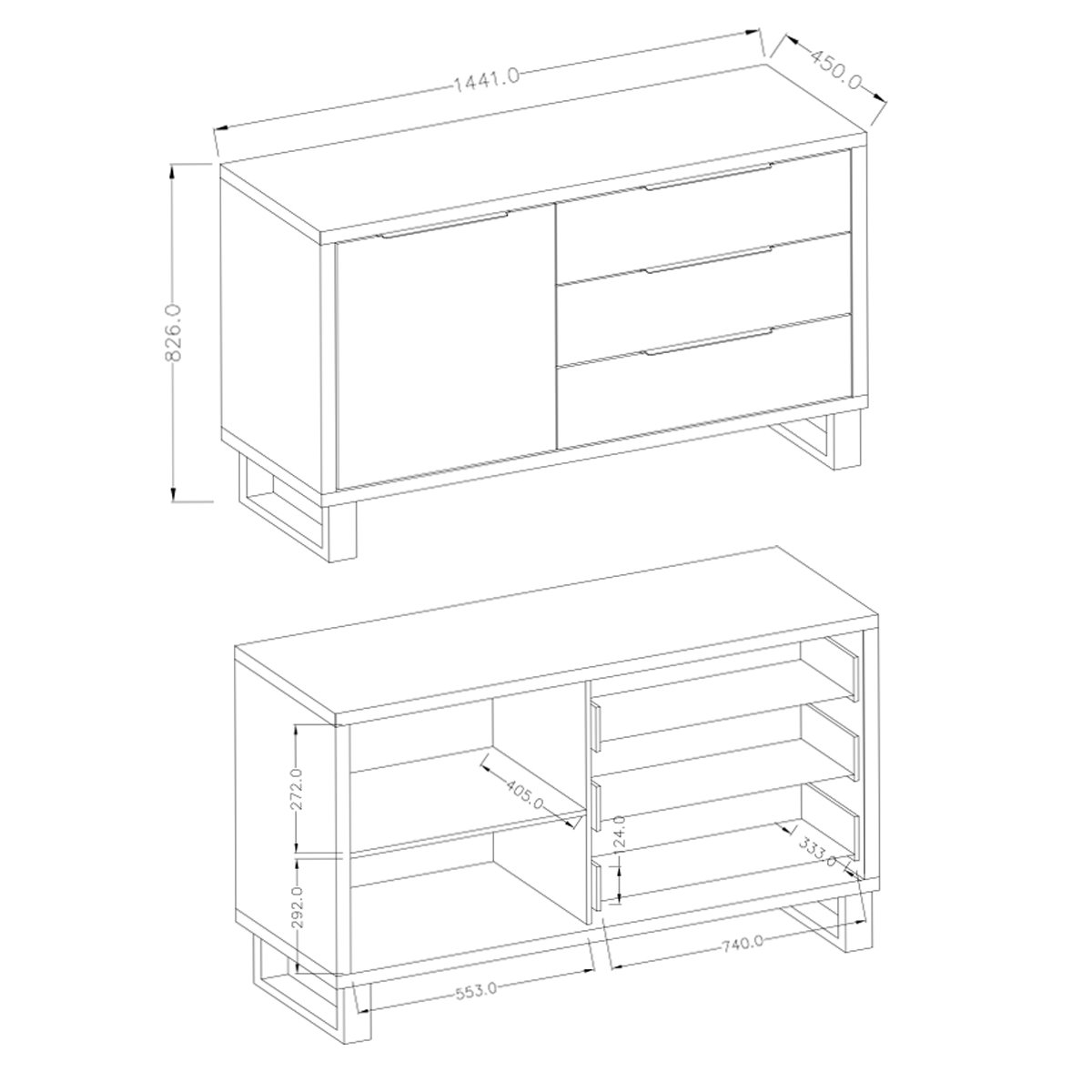 Bufé 1 puerta 3 cajones Eden Madera y Metal