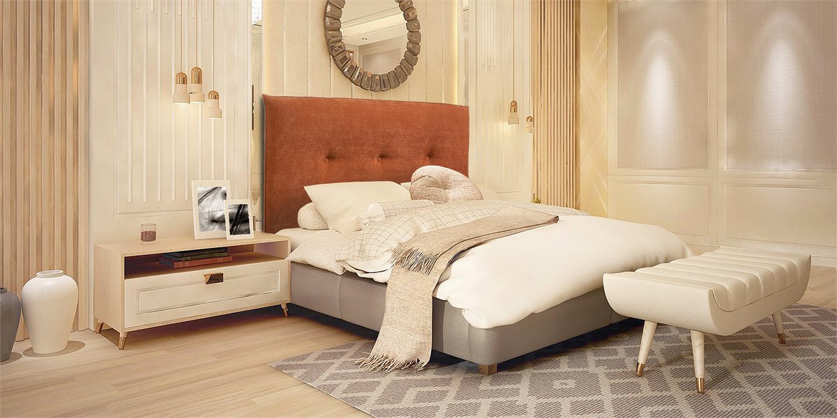 El cabecero RUBENS, en sus medidas de 160x115x12 cm, está tapizado con una atractiva tela color teja, infundiendo calidez y elegancia a cualquier dormitorio. Este diseño robusto pero elegante ofrece un respaldo confortable, ideal para tus momentos de lectura o descanso en la cama. Su color teja aporta un toque terroso y acogedor, fácil de combinar con diferentes estilos y decoraciones. Además, su tamaño es perfecto para camas de matrimonio, asegurando funcionalidad y un impacto visual impresionante. ¡Haz que tu espacio destaque con este magnífico cabecero!