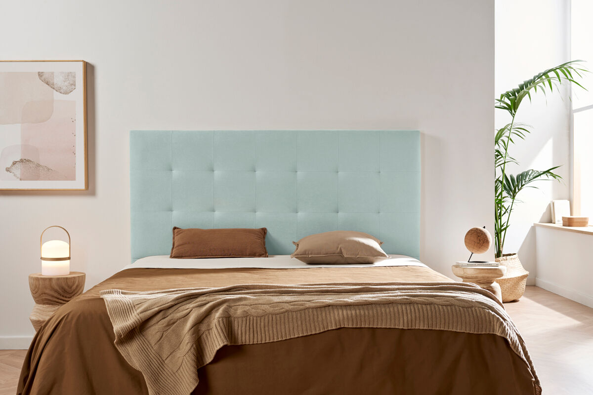 Es un cabecero con tapizado lineal formando cuadrados que dan a tu dormitorio armonía y un equilibrio simétrico.
