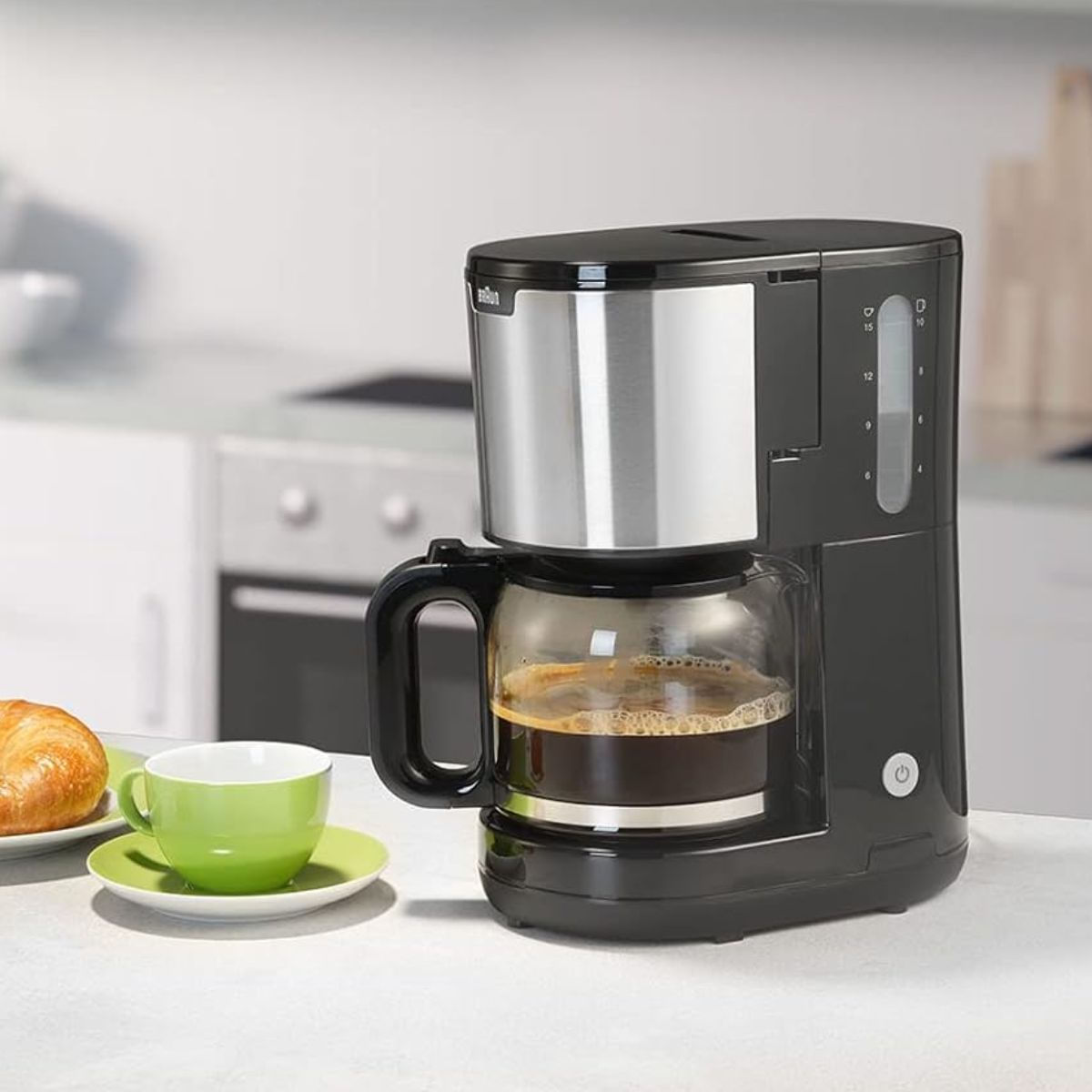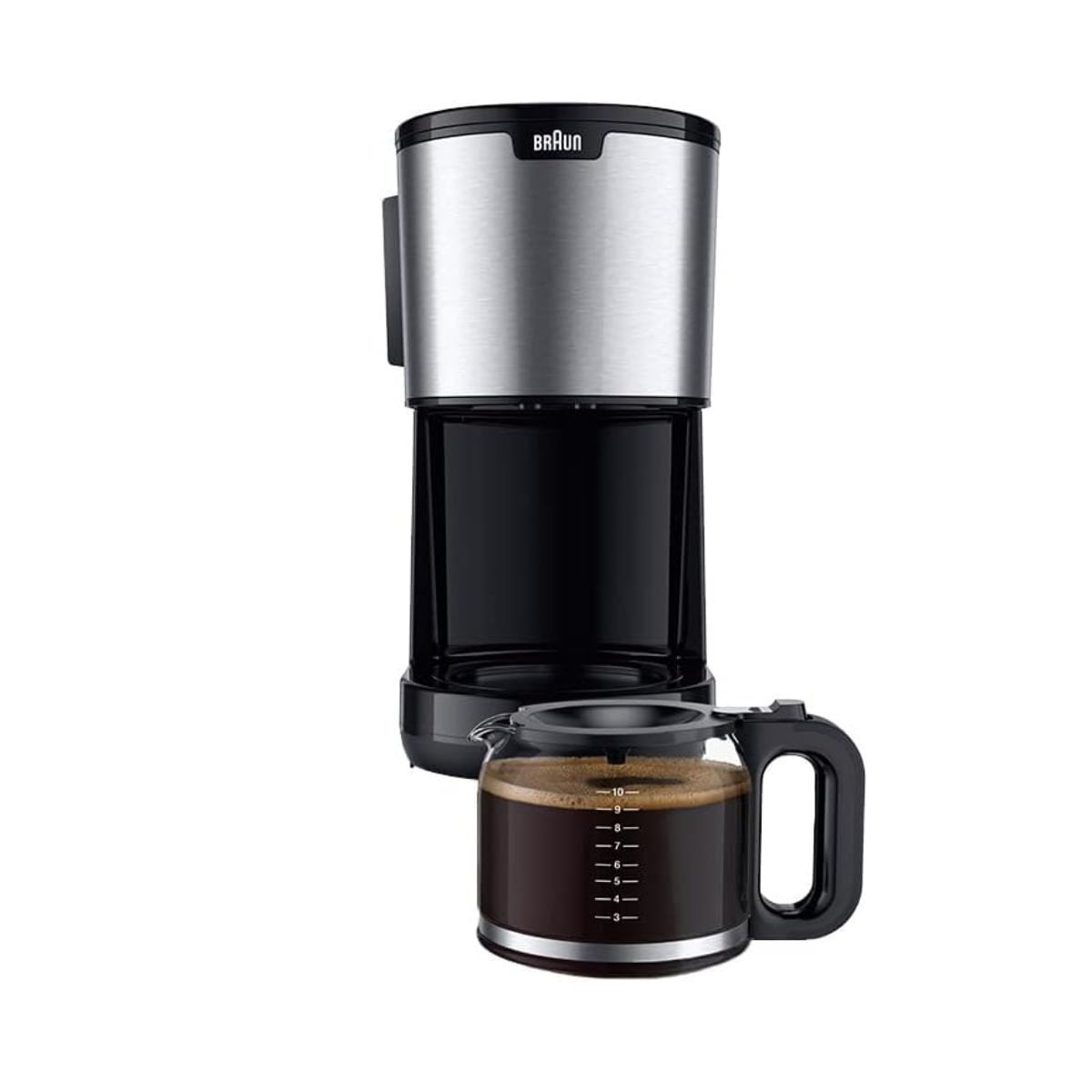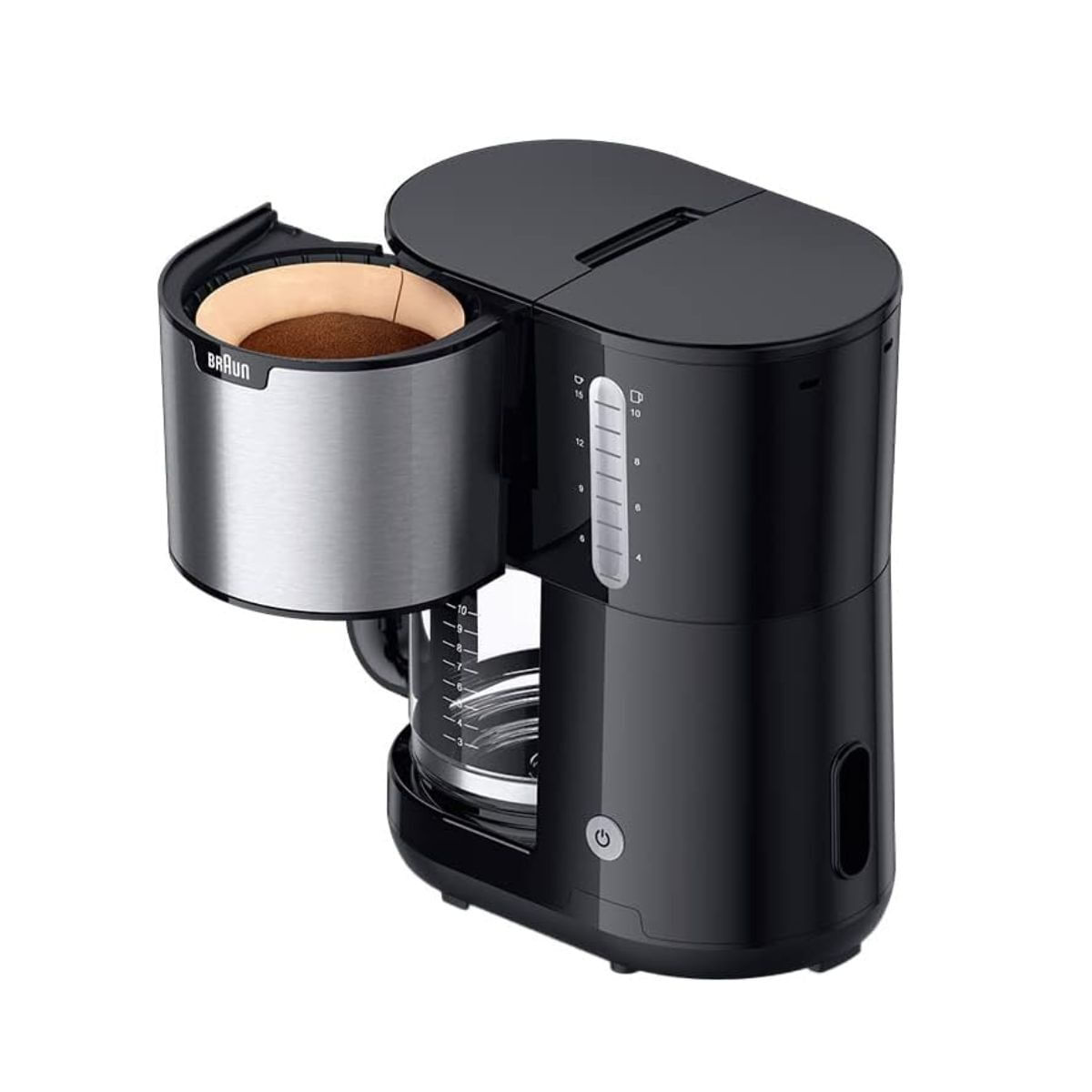 La cafetera de goteo Braun KF1500BK es la aliada perfecta para los amantes del café que buscan sabor y comodidad en cada taza. Con una potencia de 1000W y capacidad para preparar hasta 10 tazas, esta cafetera incorpora el sistema OptiBrew, diseñado para ofrecer un aroma intenso y un sabor equilibrado en cada preparación. Gracias a la función AromaSelect puedes ajustar la intensidad del café según tus gustos: fuerte, medio o suave.
