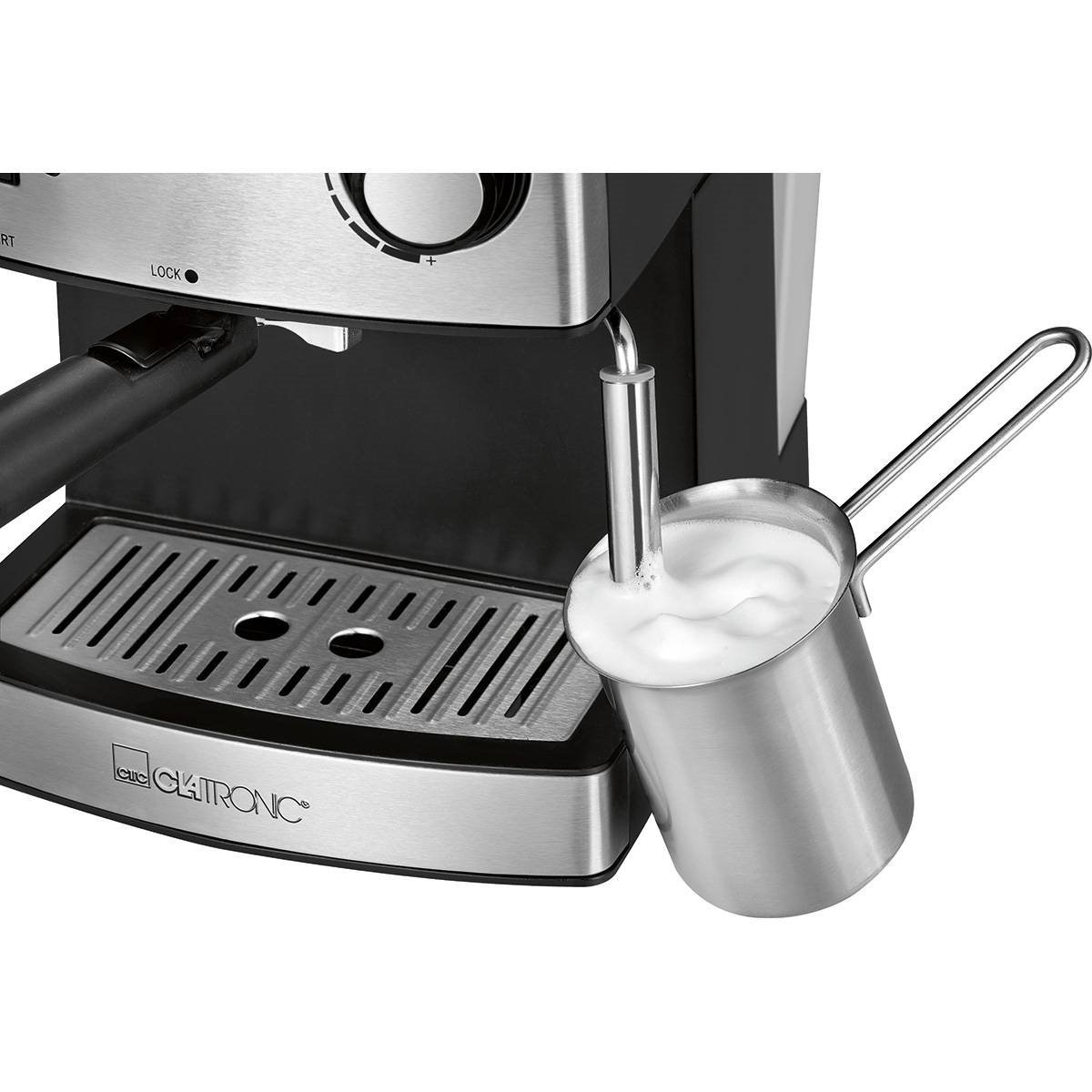 La cafetera Clatronic es inmejorable en cuestión de funcionalidad, diseño y precio. Gracias a su bomba de alta calidad ofrece 15 bares de presión ideal para la preparación de deliciosos expressos y cappuccinos dispersando el aroma del café exprés recién hecho por todo el hogar. En un sólo proceso puede llenar hasta dos tazas, para ello la cafetera Espresso de Clatronic dispone de dos tamaños de filtro diferentes, que se ajustan a la elaboración de una o de dos tazas de café.
