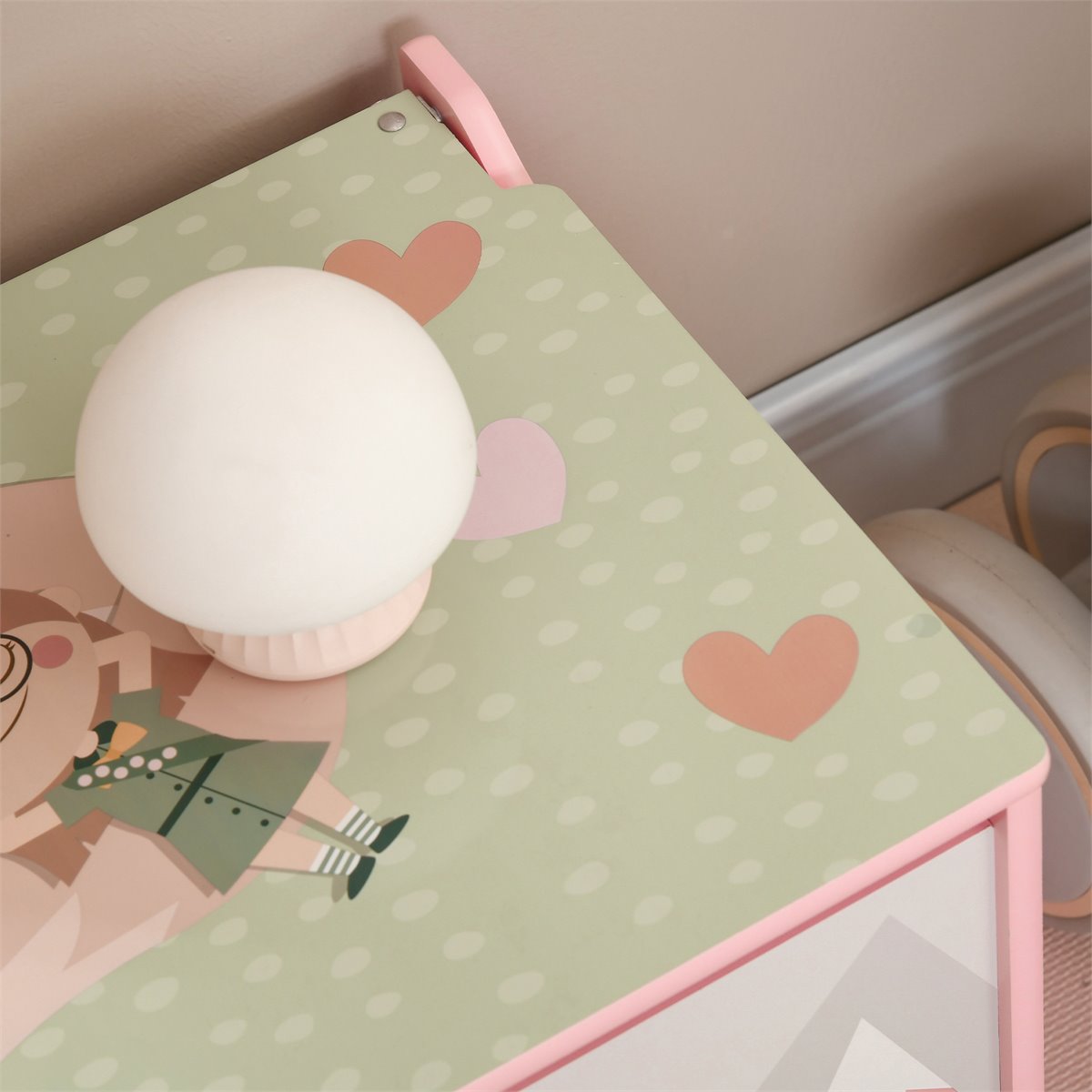 - Baúl infantil de color rosa con bonito estampado